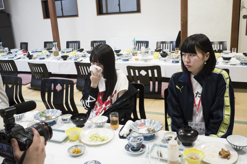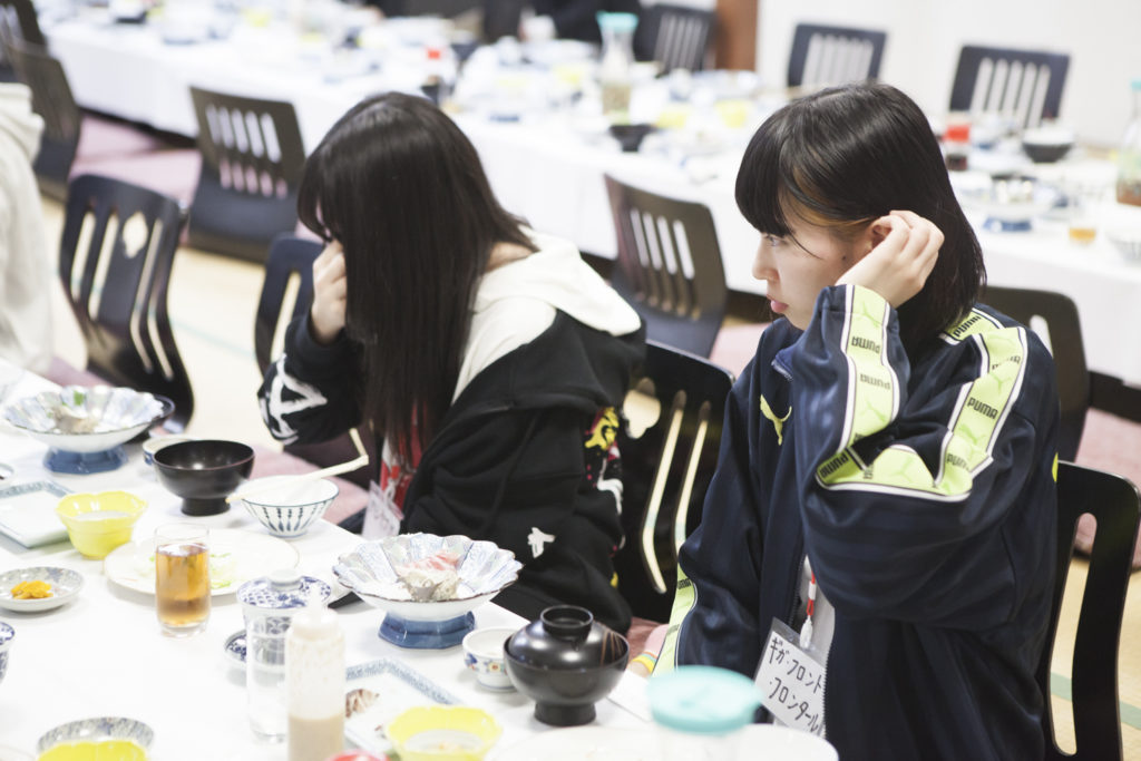 約5時間にわたるダンス練習をスポーツセンターにて終え、旅館に戻って夕食の席についた24人の参加メンバーたち。九州の離島ということもあり、刺身や茶碗蒸しなど豪華な食事を目の前に、平和に食事は進んでいく予定…… だった。