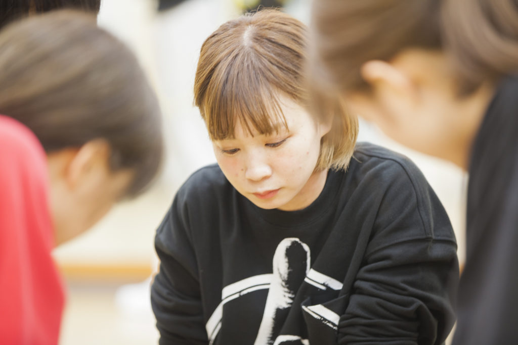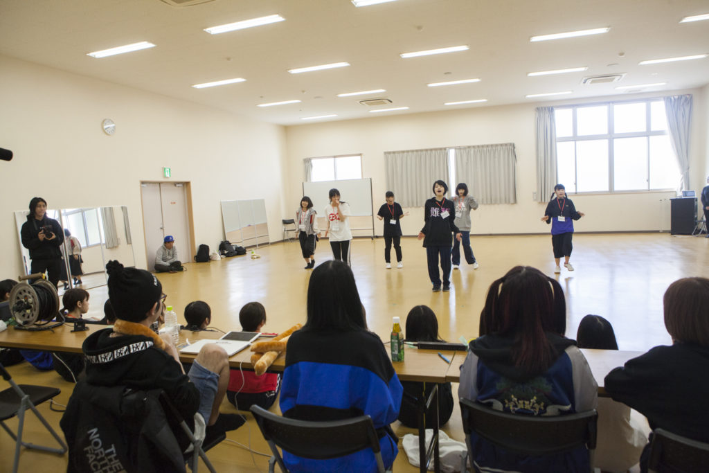 13時25分。昨日から練習してきた「BiSH-星が瞬く夜に–」の発表が行われた。4人のWACKメンバーと渡辺淳之介が審査員という形でみつめるなか、それぞれのグループがダンスを発表した。WACKメンバーは、今後もしかしたら同じグループで活動するかもしれないという視点を持ちながら発表を見守った。