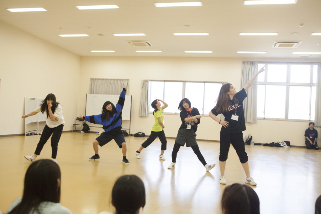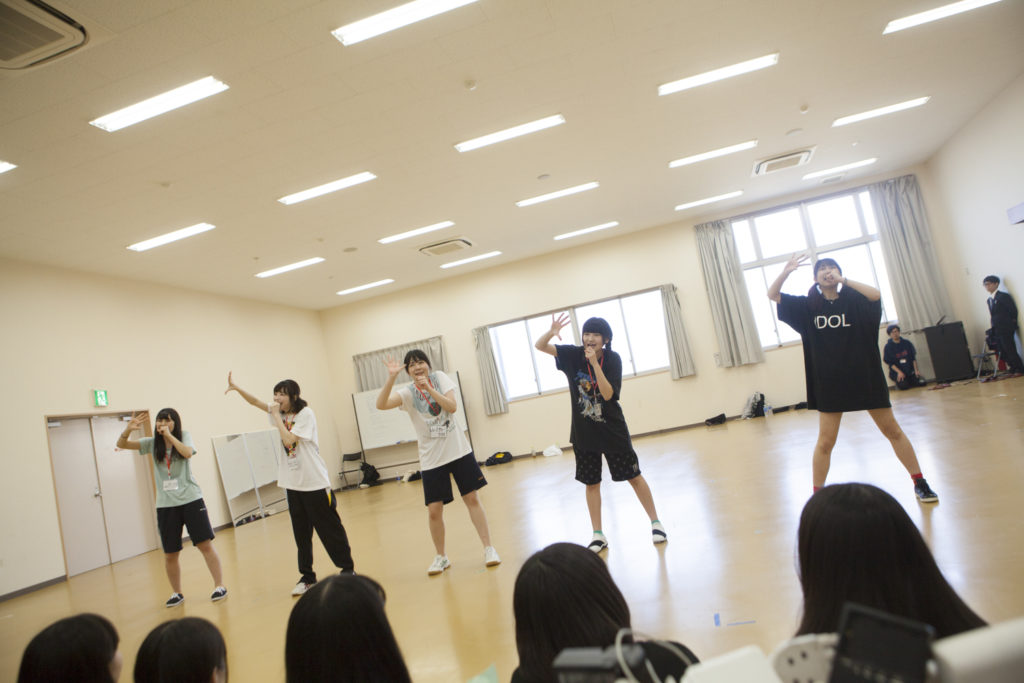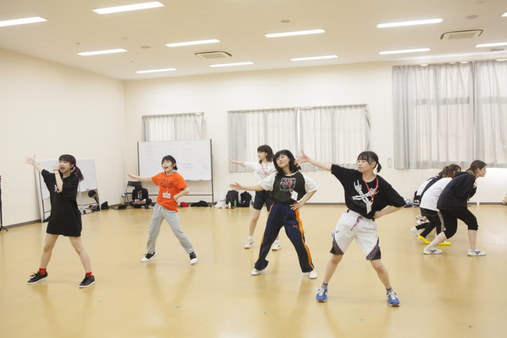 限られた時間の中、WACKメンバー1人と候補生で作られた4組の混合チームで、それぞれの課題曲を完成させていく。昨日の午後をスポーツセンターで全体練習、夜は旅館で自主練を積み重ねて来た。そして本日午前中の約3時間の練習を経て発表を行う。