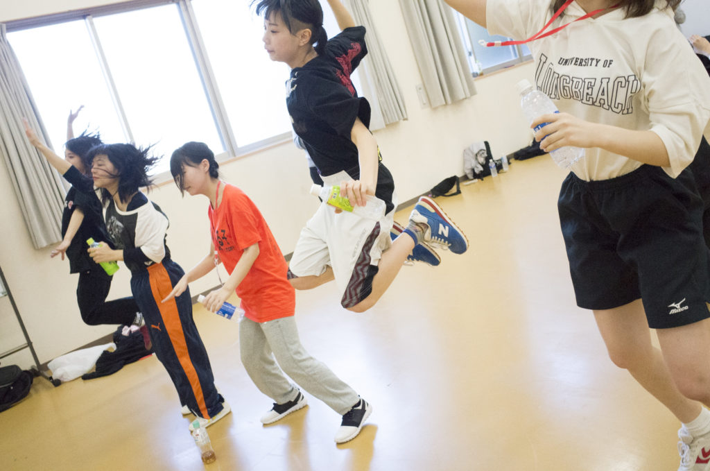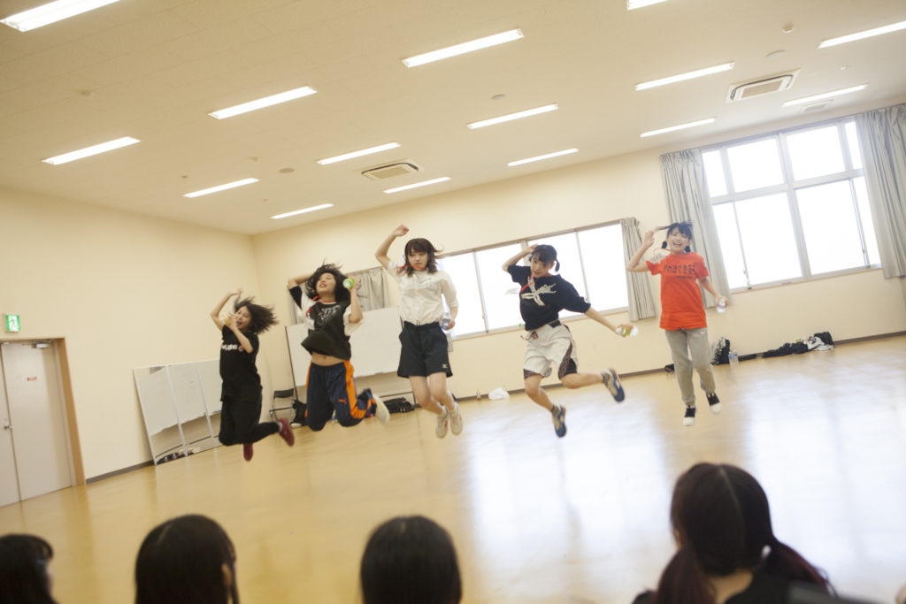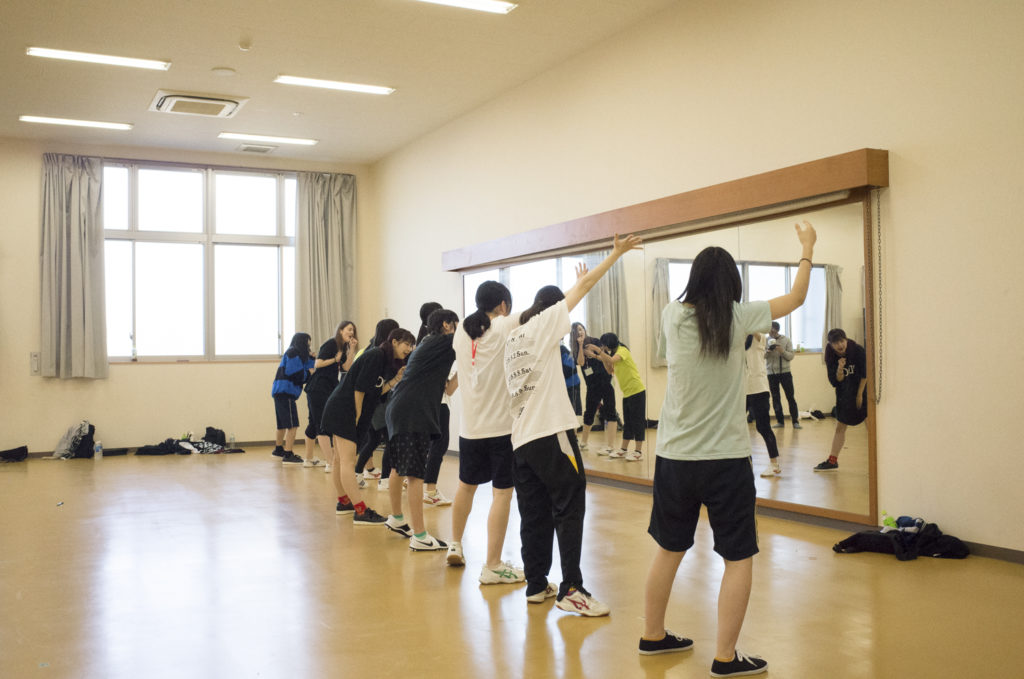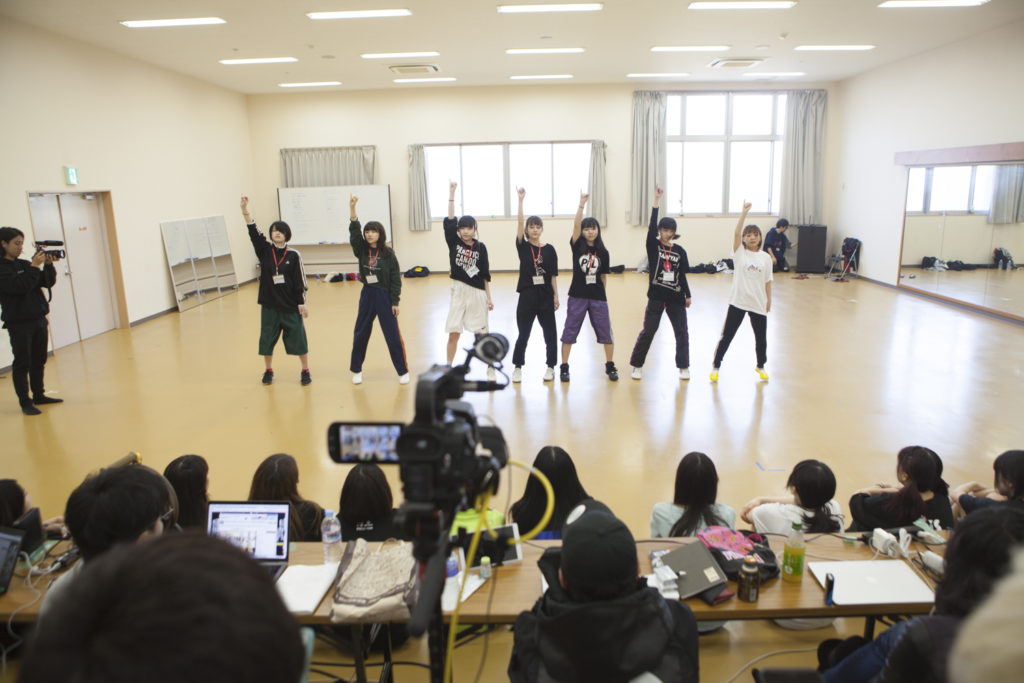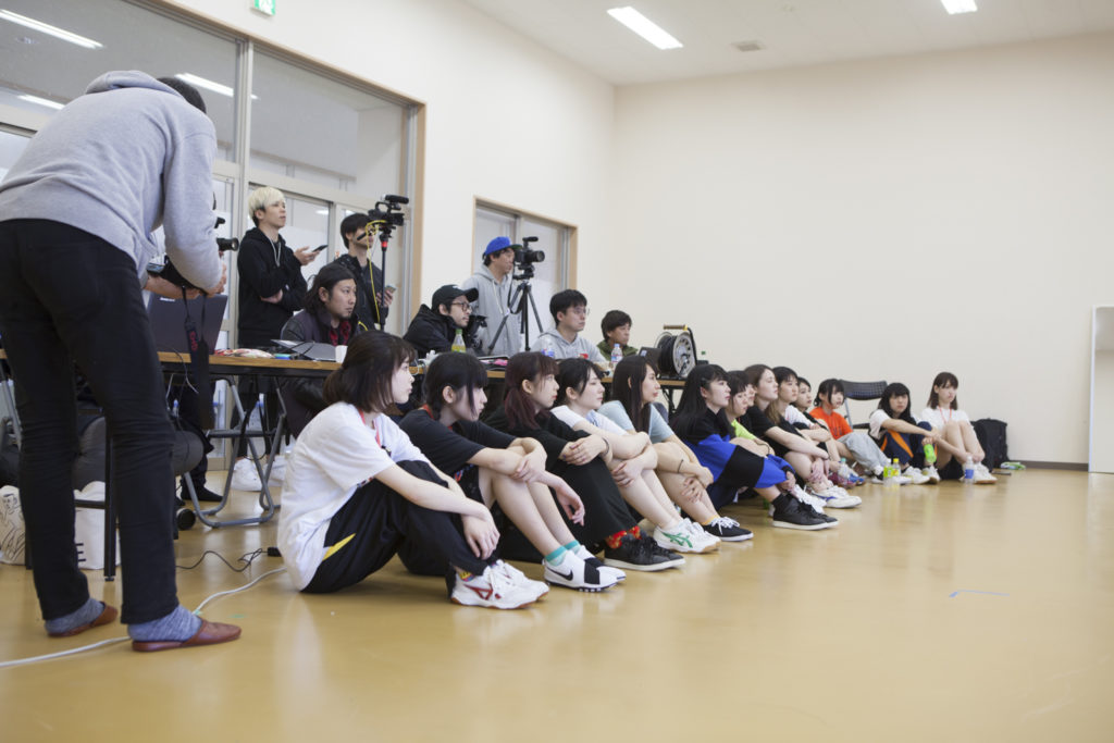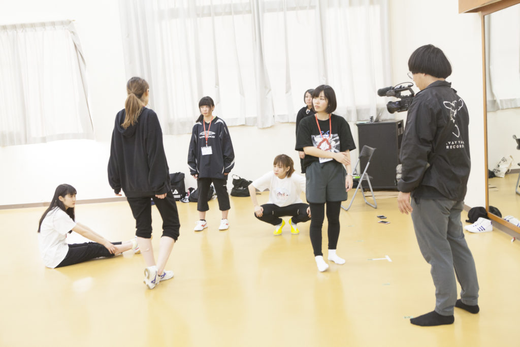 朝9時前。18名の候補生と4人のWACKメンバーたちはダンス練習のためにスポーツセンターに移動。ここからダンス発表の11時50分までチームごとに練習を重ねていく。