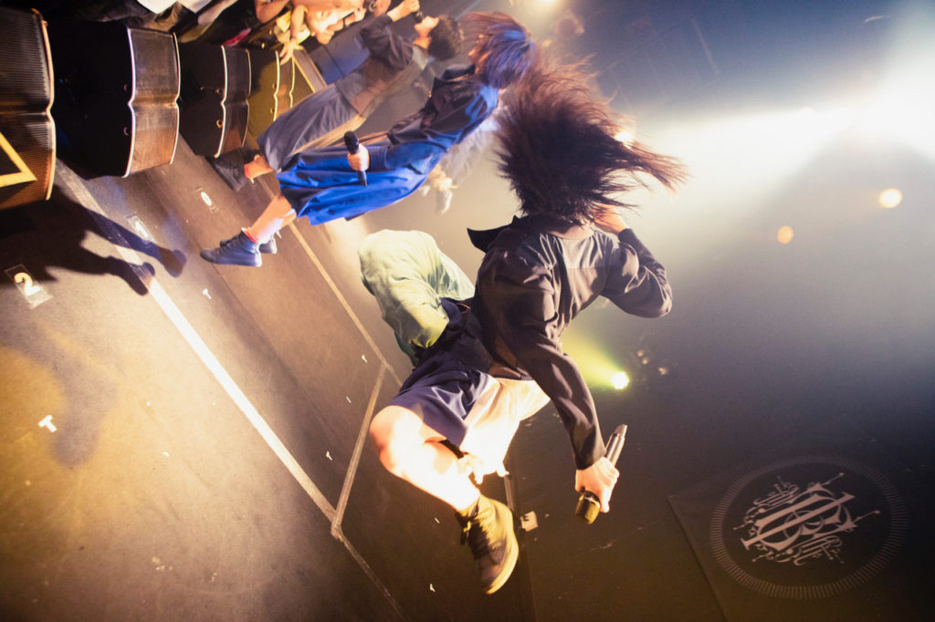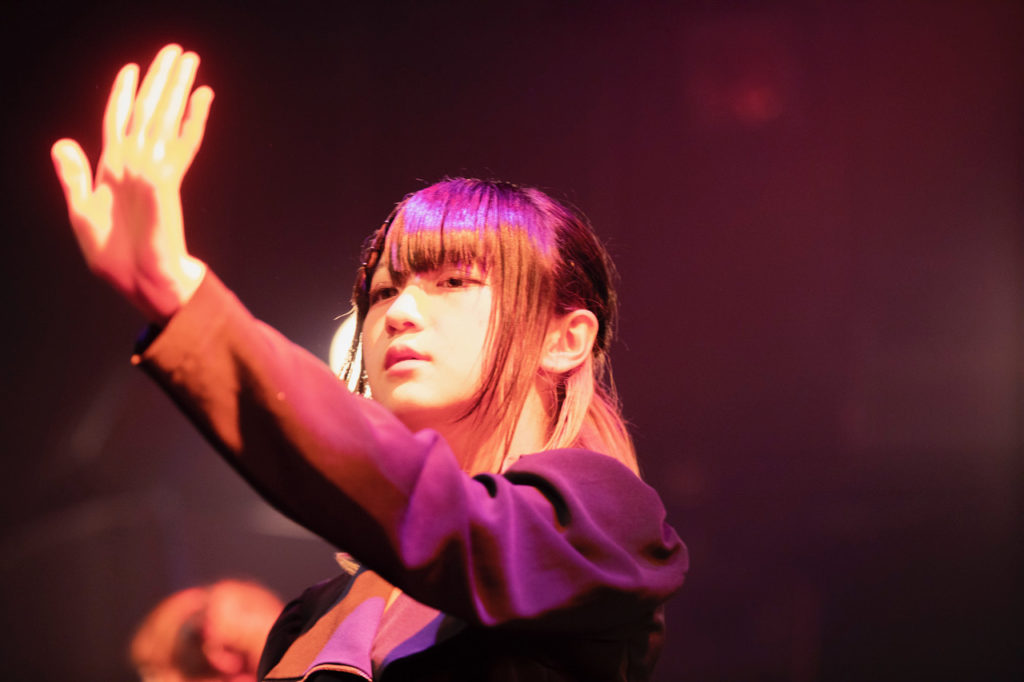 新生BiSのアンセム曲「gives」でスタートし、続けざまに4曲を歌うと、アヤが「茨城県にお集まりのみなさん、元気ですかー?」と会場を盛り上げ、6人による自己紹介をした。ペリが英語で「Hi. I’m teacher」と切り出すと、「Repeat after me」と「水戸黄門」や「納豆」、「ロッキンジャパンフェスティバル」など、茨城にゆかりのある単語を研究員(※BiSファンの呼称)にリピートさせ、「My lxxx」へ。そこから中盤戦を一気に駆け抜け、キカがMCを行なった。
