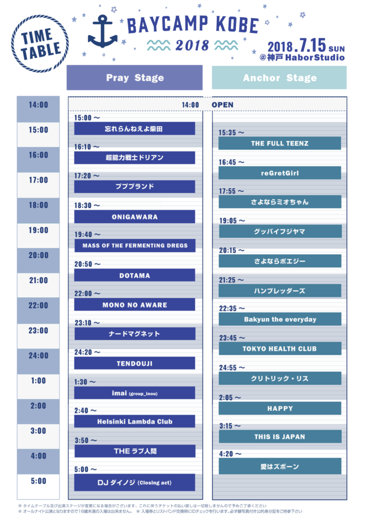 いよいよ今週末開催のBAYCAMP KOBE 2018のタイムテーブルを解禁します。