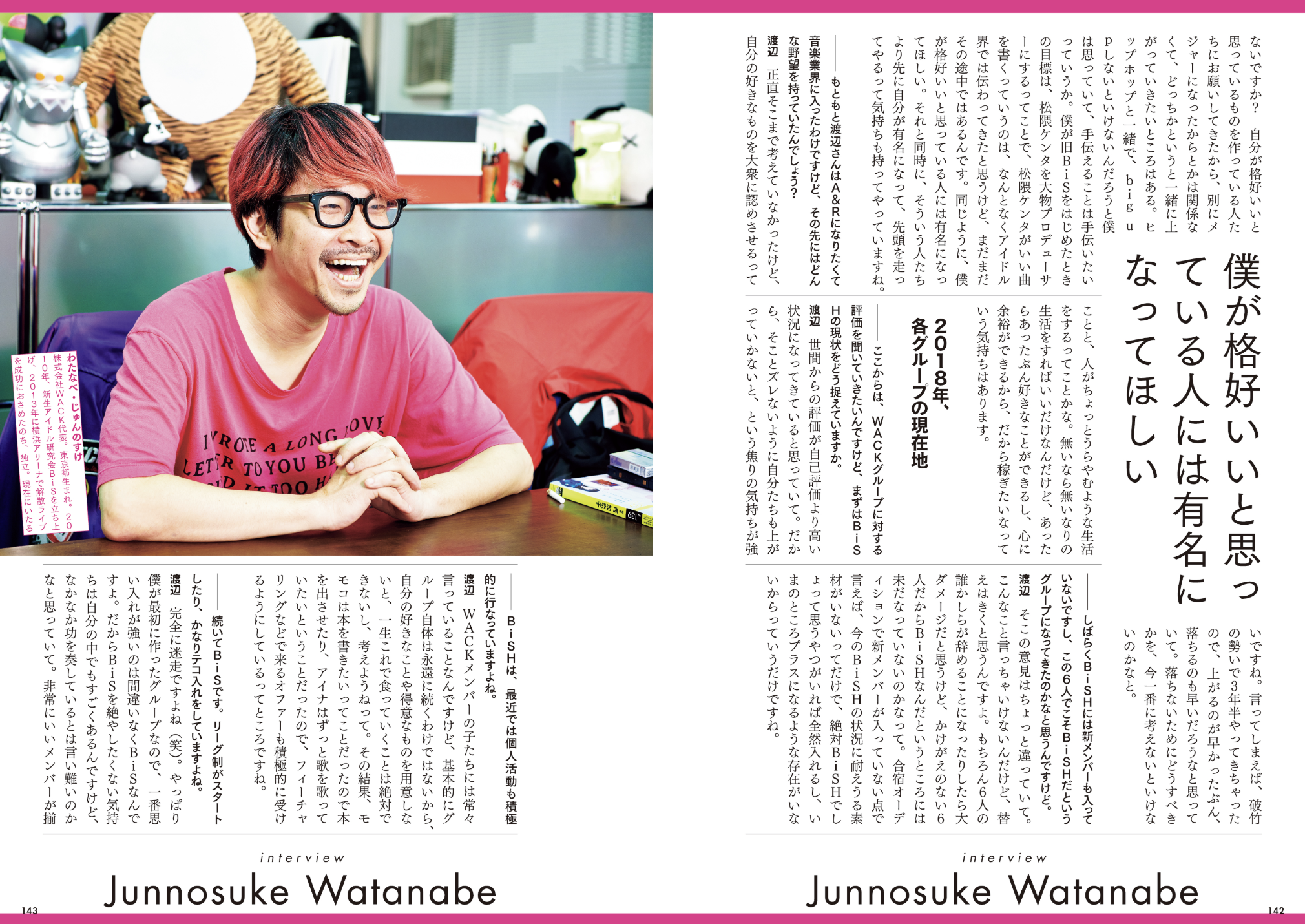 また、4グループに加え、9月にお披露目されたばかりの研修生Wagg、各レーベルスタッフ、WACK代表取締役・渡辺淳之介など、WACKを作り上げてきた制作陣へのインタビューも掲載。