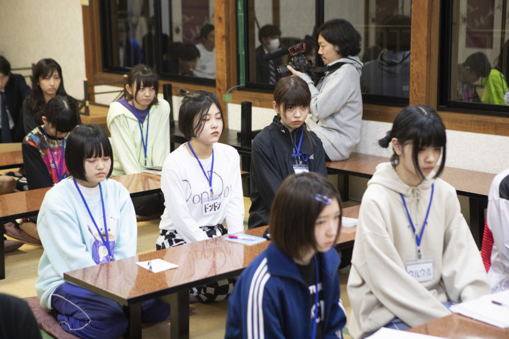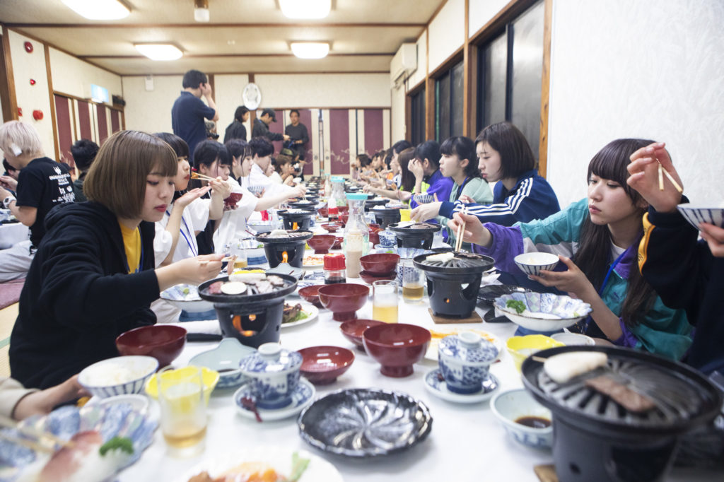 19時30分からは夕食タイム。壱岐牛や茶碗蒸し、刺身、鶏肉のトマト煮など10近いおかずを時間内に食べ、初めて全候補生が完食を果たした。