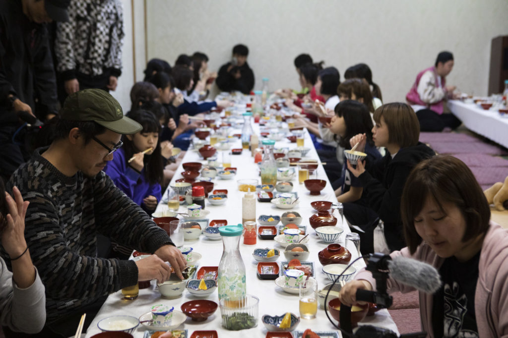 マラソン後は、宴会場にて朝食タイム。時間内に完食できないとポイントがマイナスされるルールの中、おいしいご飯をそれぞれ一生懸命食べた。