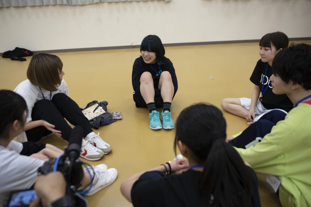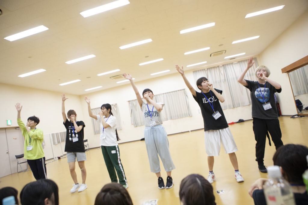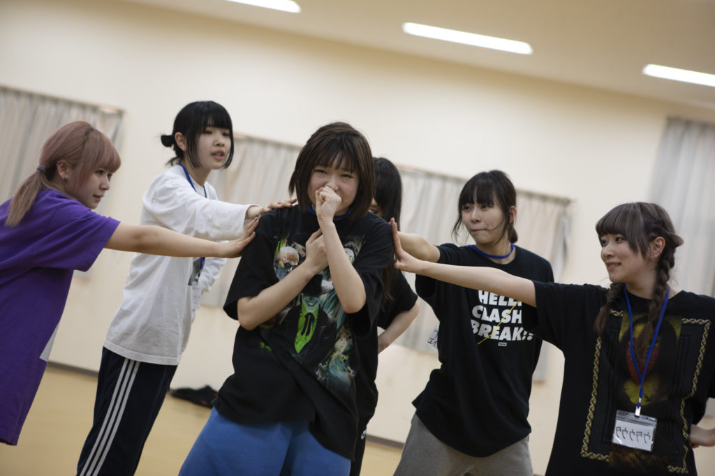 約30分の昼食タイムを経てスポーツセンターに戻ると、4つのチームにわかれて練習していた課題曲「EMPiRE is COMiNG」をWACKメンバーがみつめる中で発表した。