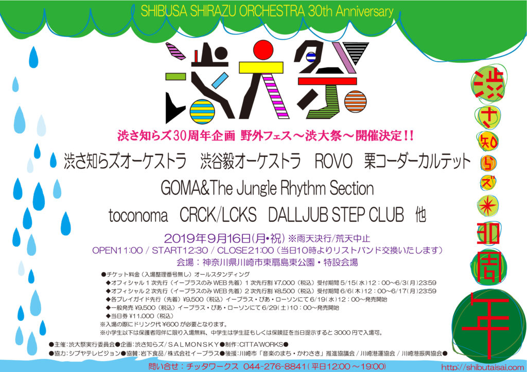 今年で結成30周年を迎える渋さ知らズだからこそ実現できる野外イベントになりそうだ。続報にも注目しておこう。(西澤裕郎)