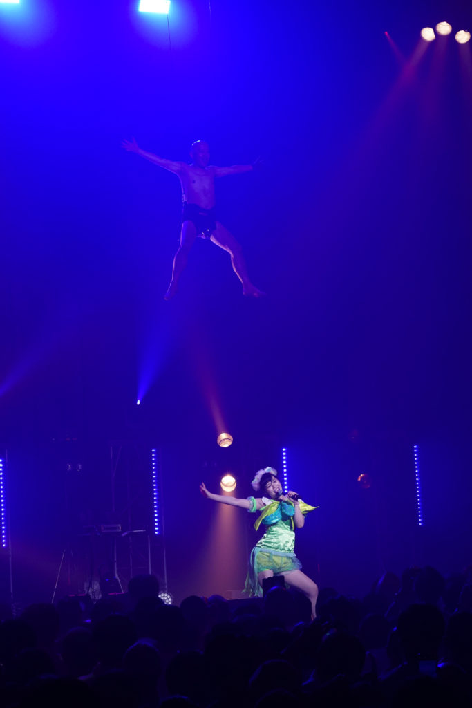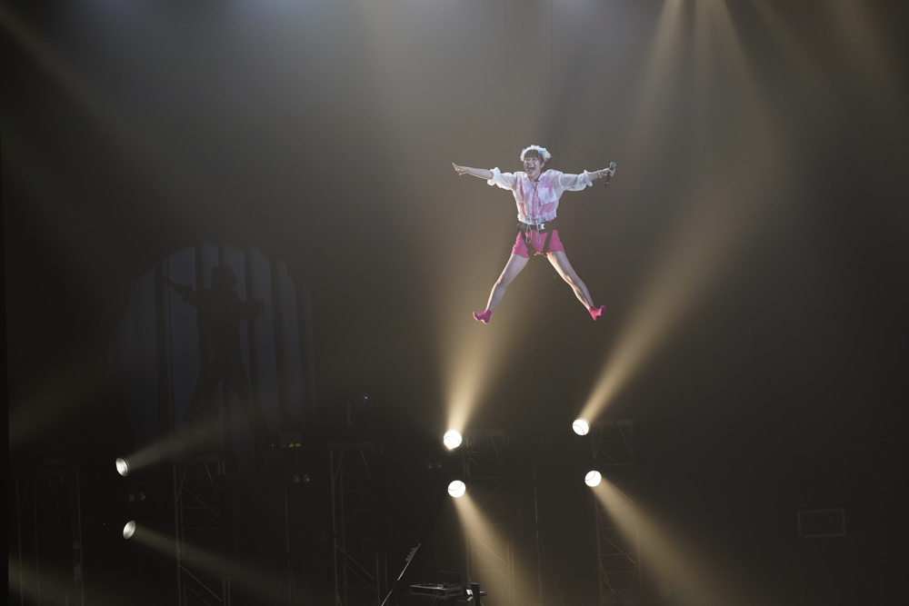 「ほめられてる!」では、楽曲に乗せてキッズダンサー1人1人の見せ場を作り褒めるかと思うと、2番では禿げた観客をたくさん見つけてコミュニケーションを取るなど、眉村のざっくばらんな可愛さに会場が巻き込まれていく。次の曲「ナックルセンス」では、なんと眉村がワイヤーで宙に浮くという驚きのパフォーマンスを見せる。空中で全身を使って感情を表現する眉村に、会場は最高の盛り上がりで応えた。