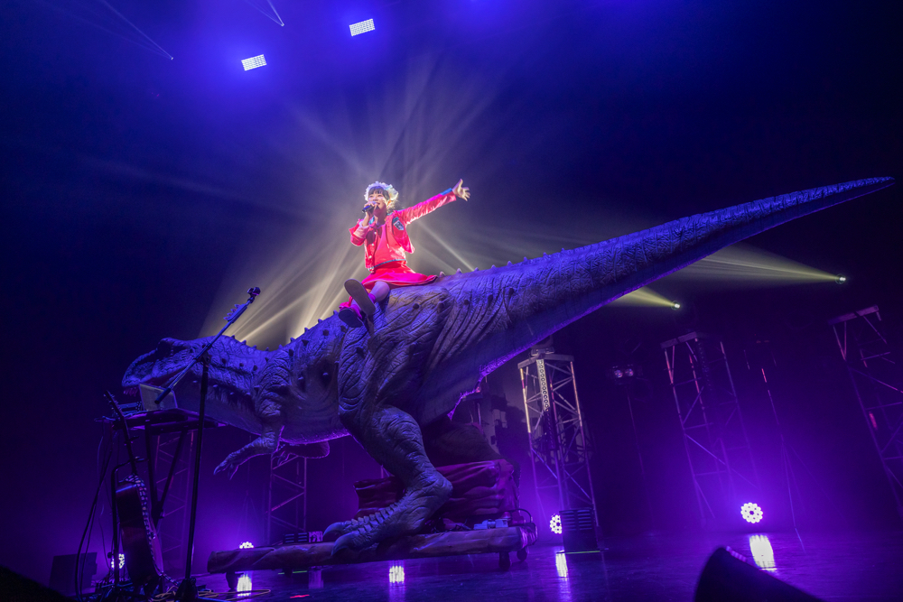 MCで「私は今からこの恐竜と戦わなくちゃいけないの。みんな、力を貸してくれますか? そう、人間は音楽で一つになったら、最強なのです」と語ると、6人のキッズダンサーと共に「Queeeeeeeeeen」を披露。パンチの振り付けで会場を一つにして、恐竜を退治した。