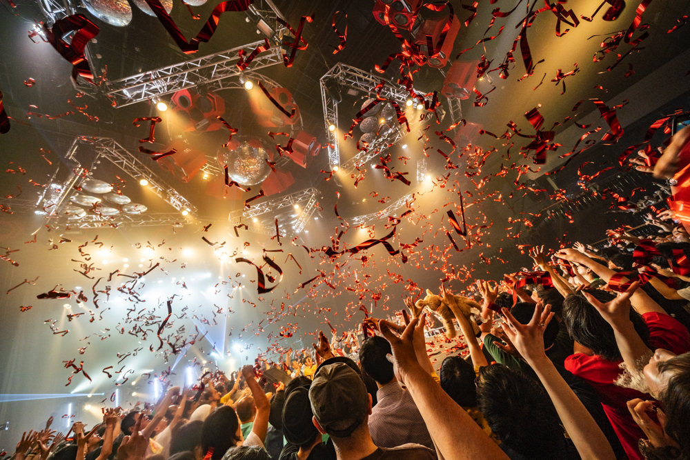 未発売曲「スクワットブンブン」では、眉村が浮き輪の船に乗ると、観客の上を運ばれ中央のステージへ。「今日は新規が多い」と語るも、観客の2000人全員をスクワットに巻き込む眉村の力は圧巻だった。「これから起こる事、誰も予想できないから覚悟しててねー!」と叫ぶと、会場は期待に沸き歓声が響いた。