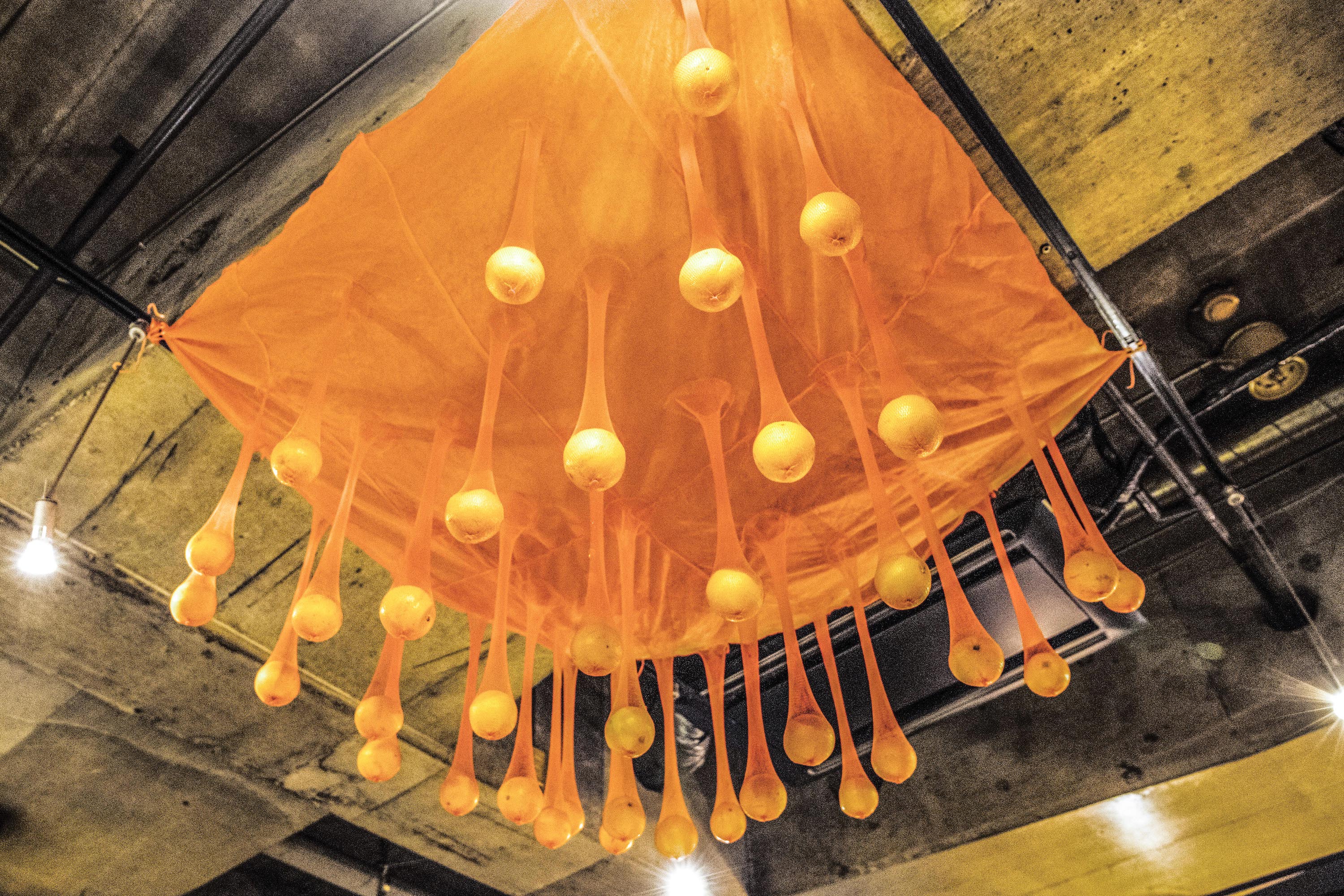 xiangyu初の自主企画ということでxiangyuのやりたいことを詰め込んだ本イベント。渋谷・O-nestの会場内にもxiangyuのこだわりが散りばめられていた。入場しまず目に入るのは、天井からネットで吊り下げられた“みかん”。その下には昔ながらの畳とちゃぶ台が用意され、香魚荘に訪れた人が談笑するスペースとなっていた。また、会場に配置されたプチトマトやアロエなどの植物はxiangyuが実際に育てたもので、そこから微弱電気を取り半澤慶樹(PERMINUTE)が音に変換するといったパフォーマンスも行われ、ほのかなみかんの香りとchillな雰囲気に会場は包まれていた。