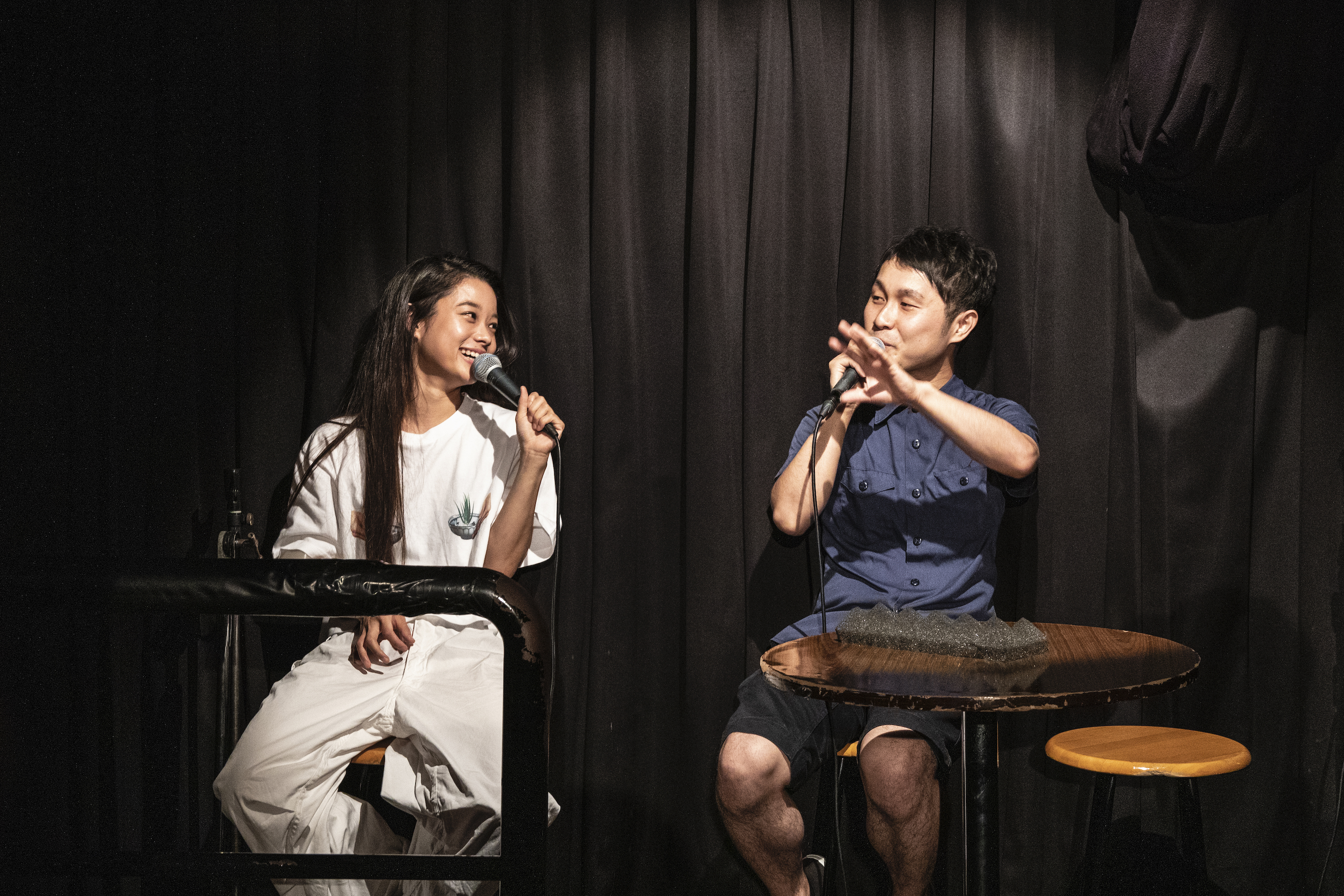 続くテキストユニットTVODで活動し古本屋早春書店の店主も務めるコメカとxiangyuのトークコーナーでは、実はかなりの本好きというxiangyuの意外な一面を掘り下げた。xiangyuは、元々ファッションを学んでいた学生の頃から、周りの人を巻き込むような場を作りたいと思っていたという。本イベントでもxiangyuという存在が多くの人を巻き込む1つの場となったのは、彼女の「人の繋がりに興味がある」という姿勢が通底しているからではないだろうかとコメカは話し、「きっと本屋向いてますよ」と勧めると、xiangyuも「じゃあ、やろっかなー」と笑いながらも乗り気の様子。