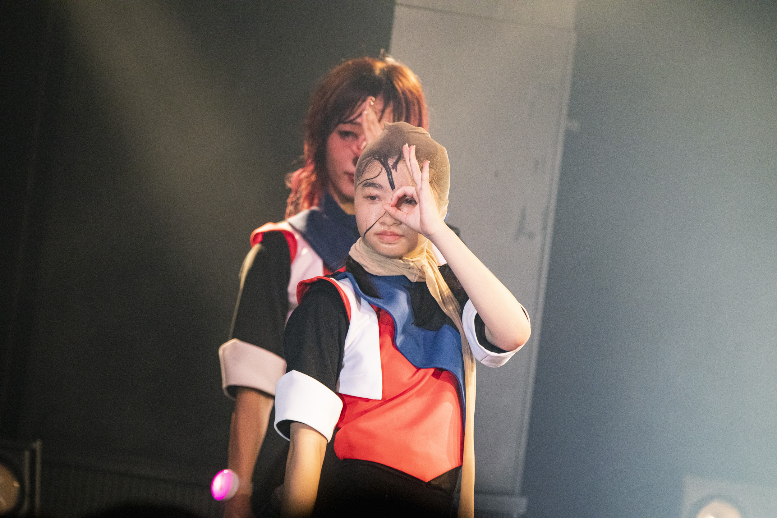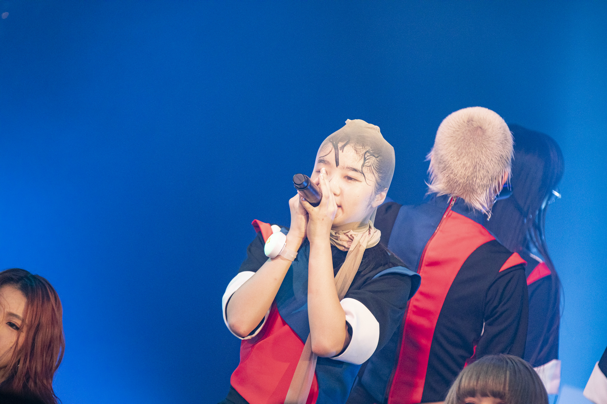 そして、ギャンパレ恒例のコントコーナーへ。定番となったパンストをかぶるかどうかをモチーフにした10人の掛け合いが行われ、キャン・GP・マイカと月ノウサギのどちらが被るか揉める中、最終的にナルハワールドがパンストをかぶることに。ナルハがパンストを被ったままバラード楽曲「WE ARE the IDOL」を歌い上げ、パンストを客席に脱ぎ捨て「こんなの絶対意味ない!!」と叫ぶと、エレクトロダンス楽曲「イミナイウタ」へ。「GANG PARADE」、ハルナ・バッ・チーンが赤ちゃんスーパーマンになって空を飛ぶ振り付けが印象的なテラシマユウカ作詞曲「本当に僕が生きたかったのはこんなんじゃ無え!」、「Beyond the Mountain」と、ギャンパレ楽曲の幅の広さを感じさせるセットリストで中盤を駆け抜けた。