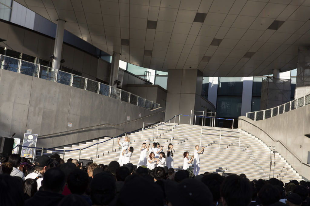 そして、ギャンパレの代表曲「Plastic 2 Mercy」で遊び人たちとともに飛び跳ね、最後は「CAN’T STOP」でメンバー同士、遊び人同士で手を繋ぎ、ミニライヴは終了した。