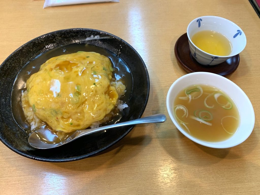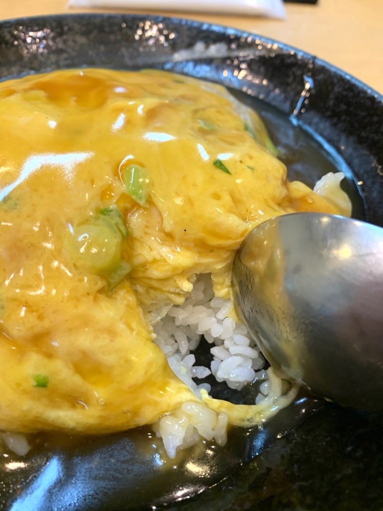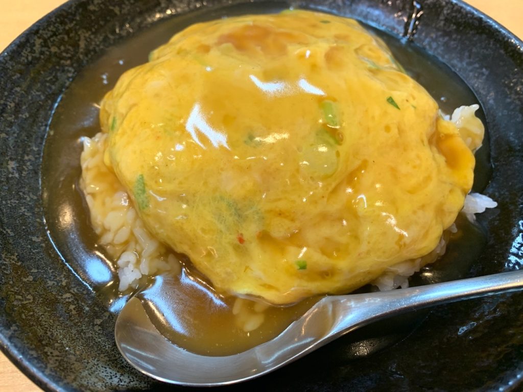 うんまい‼︎ 甘酸っぱい醤油ベースだけど、ほんのり何か後味の香る天津飯‼︎ この後味はなんだろう!? 全然分からない…… けど全然くどくないし、最後に残る酸味がまた次の一口を求めさせる。これはどういうカラクリなんだ……?
