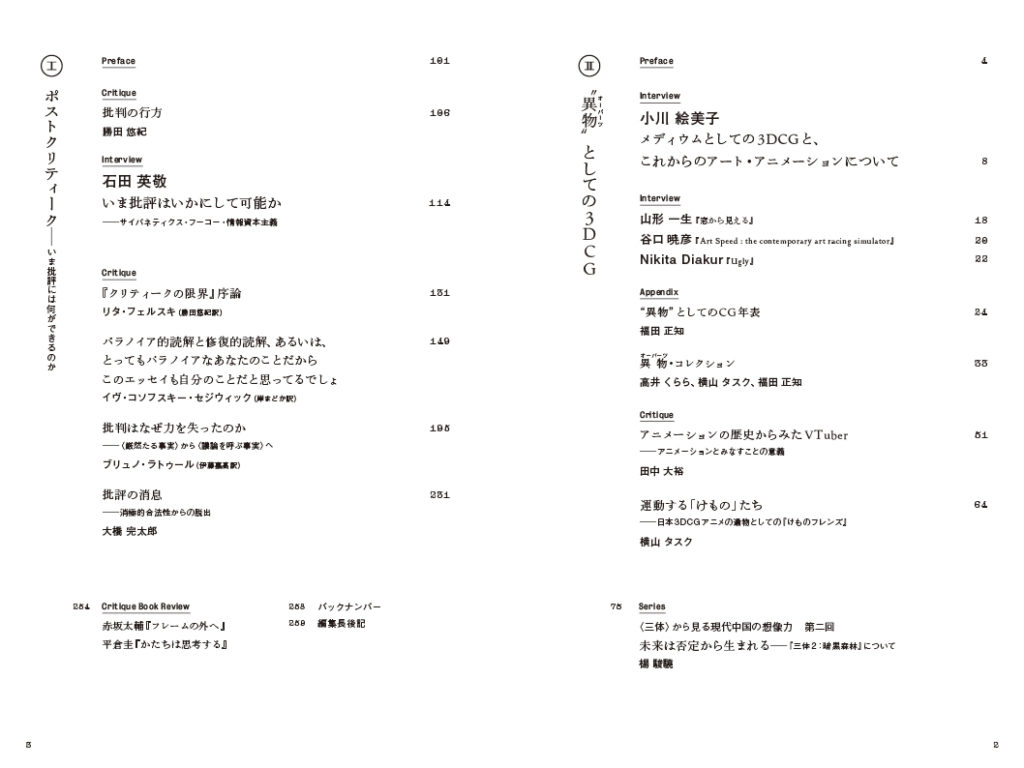 今回の特集は「ポストクリティーク――いま批評には何ができるのか」&「“異物(オーパーツ)”としての3DCG」。