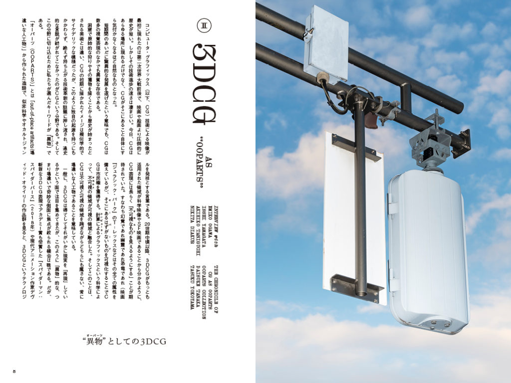 わずか半世紀の間に飛躍的な進展を遂げた3DCG。それは単に現実を高い精度で再生産するだけではなく、私たちが見る景色を異質なものに変える「異物(オーパーツ)」としての側面と共に進化してきた。本特集の狙いは、従来注目に値しないとされていたこの「異物(オーパーツ)」的側面から3DCG技術の可能性を掘り下げることにある。本特集では、デジタルアートの祭典、アルス・エレクトロニカでコンペティション部門長を務める小川絵美子氏、および実験的な表現を実践するクリエイター、山形一生氏、谷口暁彦氏、ニキータ・ディアクル氏へのインタビュー、共時的/通時的に3DCG表現を捉える4つのテーマのコラムと年表、アニメーション研究者・田中大裕氏によるVTuber論と批評家・横山タスク氏による日本3DCGアニメーション論を掲載した。