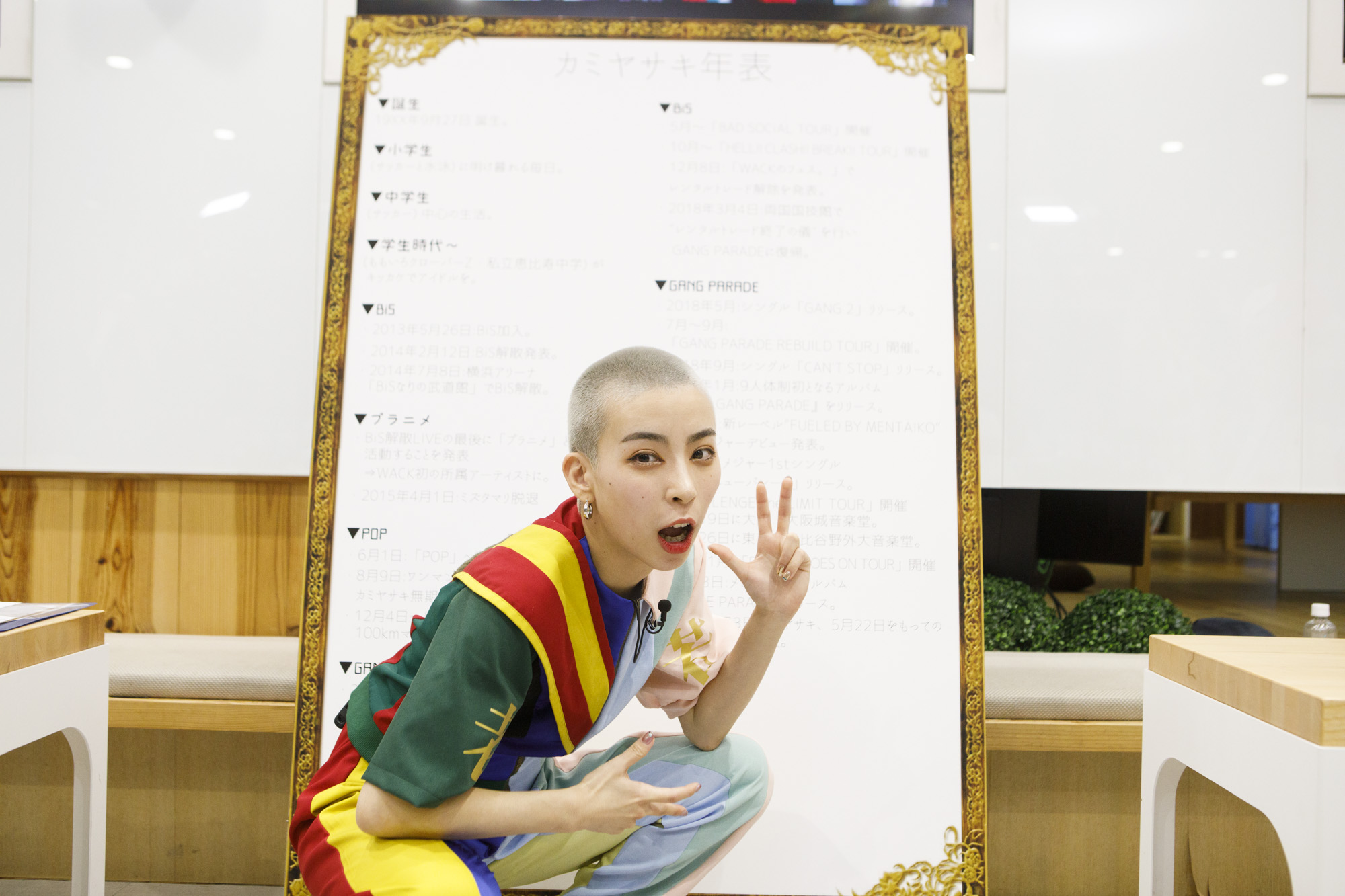 ニコ生中継は、スタジオとオンラインを組み合わせ、「カミヤサキ年表」を元に、「人間・カミヤサキ」の歴史と生き様を一緒に振り返った。Twitterで募集した「#カミヤサキヒストリー」の思い出や写真、エピソードなども盛り込み、カミヤの人生を誕生、小学生時代、中学生時代、学生時代、BiS時代、POP時代、GANG PARADE時代と時系列に一つ一つ振り返っていった。カミヤが坊主にしたとき、最初の頃はウィッグをかぶっていたなど、裏話も語られ盛り上がりを見せた。