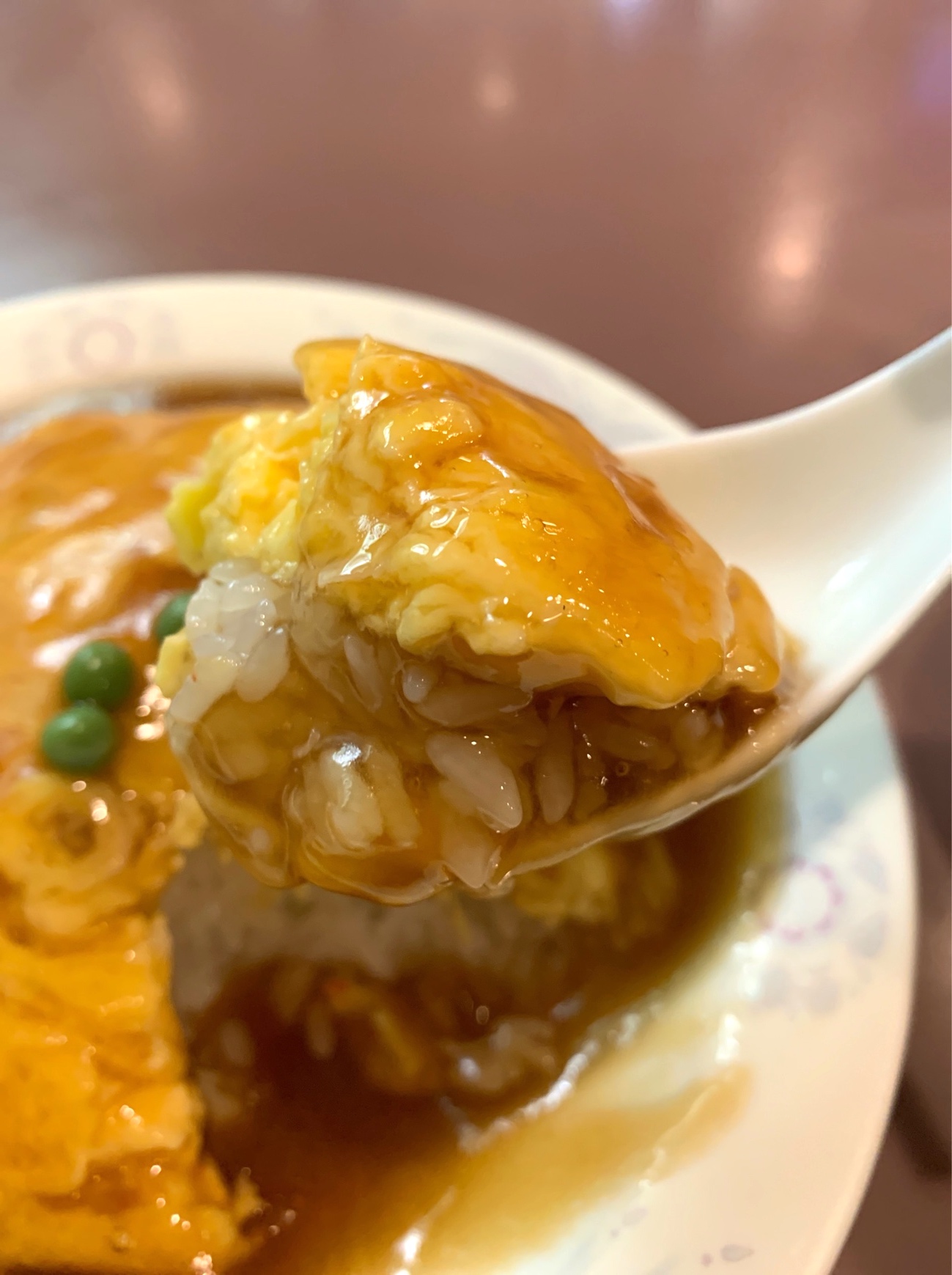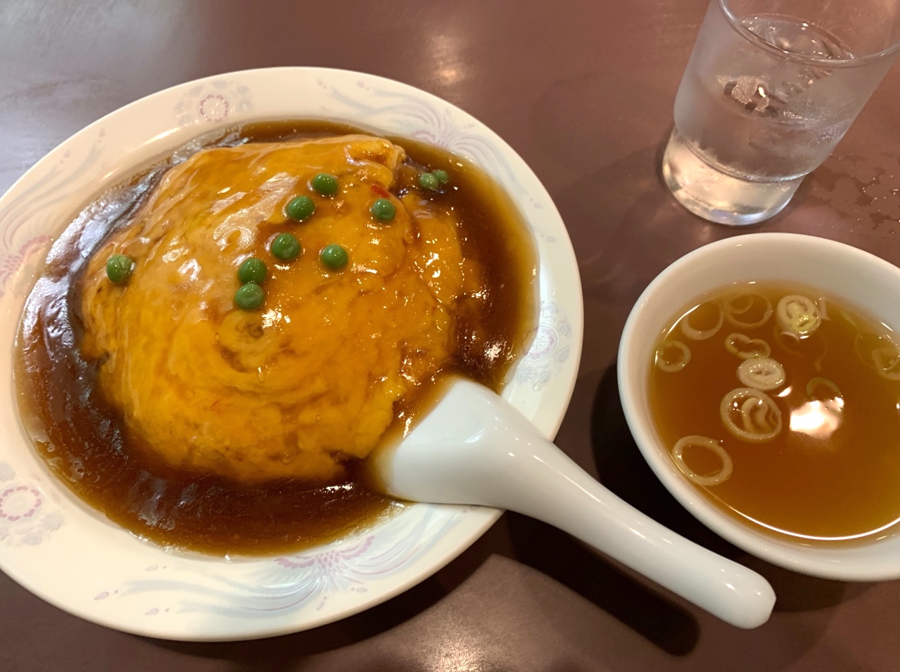 写真だと上手く伝わらないけど、普段食べてる天津飯よりだいぶ厚いんですわ! そしてほんのり口の中に広がる甘さは、運動会の日の母のお弁当にあった卵焼きを思い出すような甘さ! どこか懐かしくもあり、口と心にじんわり染みる旨味!