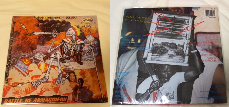 この日は、リー・ペリー(LEE PERRY & THE UPSETTERS)の『Battle Of Armagideon』をこれまたジャケ買い。肉々しい裏ジャケに心奪われ持ち帰りましたが、そのド派手な外見に負けず劣らずの自由なダブの世界に圧倒されてしまいました。