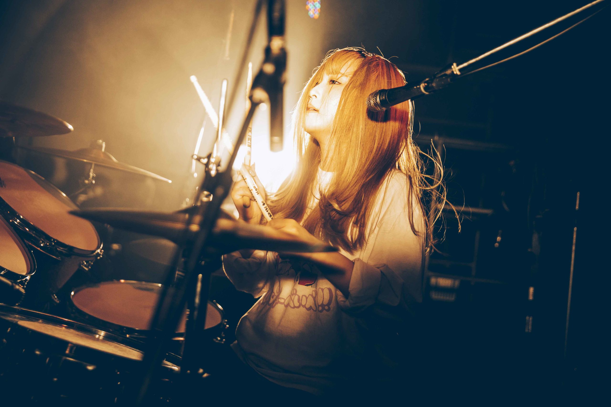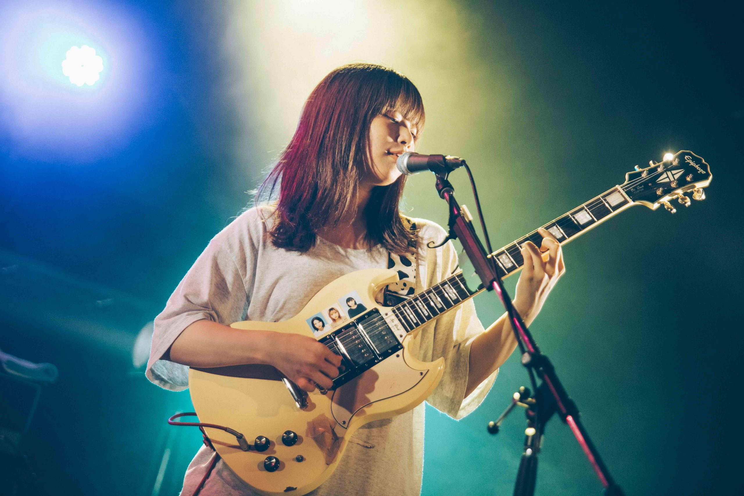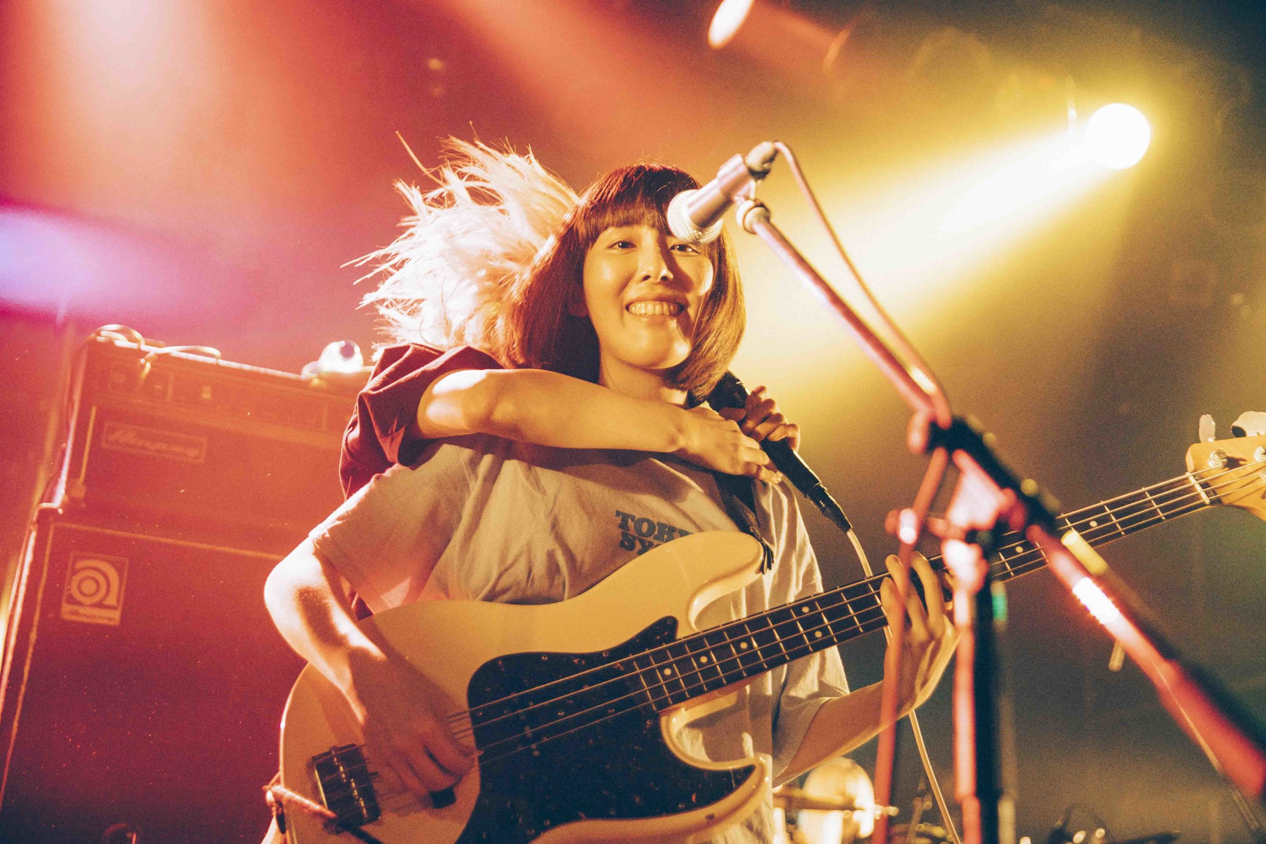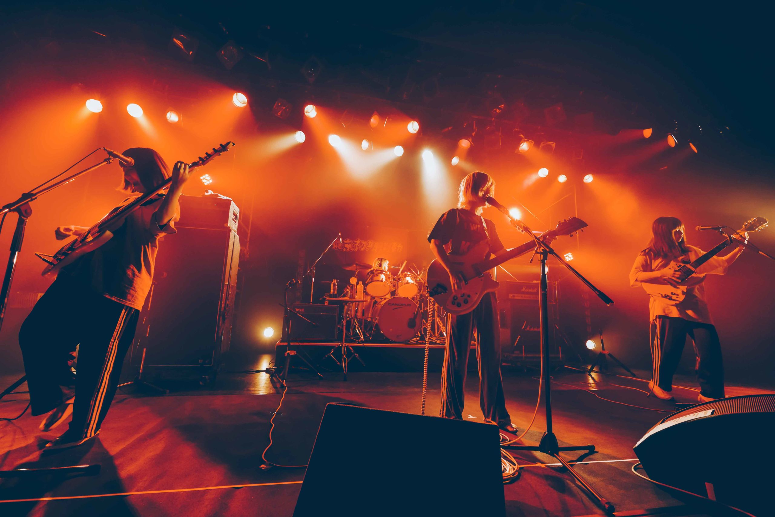 声は出さずとも観客たちの想いは一緒だ。間髪おかずに起こるアンコールの拍手に応えて再びステージに登場した4人。し―なちゃんがアコースティックギターを手に、東京初期衝動的バラードソング「SWEET MELODY」を歌い出した。なおの強烈なドラム、まれのエレキギター、かほのベースの重なりあった音の迫力がボディソニックとしてダイレクトに伝わってくる。そして最後は、バンド名を冠した「東京初期衝動」でコーラスも共に叫び、「このステージにいつまでもいます!」としーなちゃんが叫んで約1時間強を駆け抜けた。