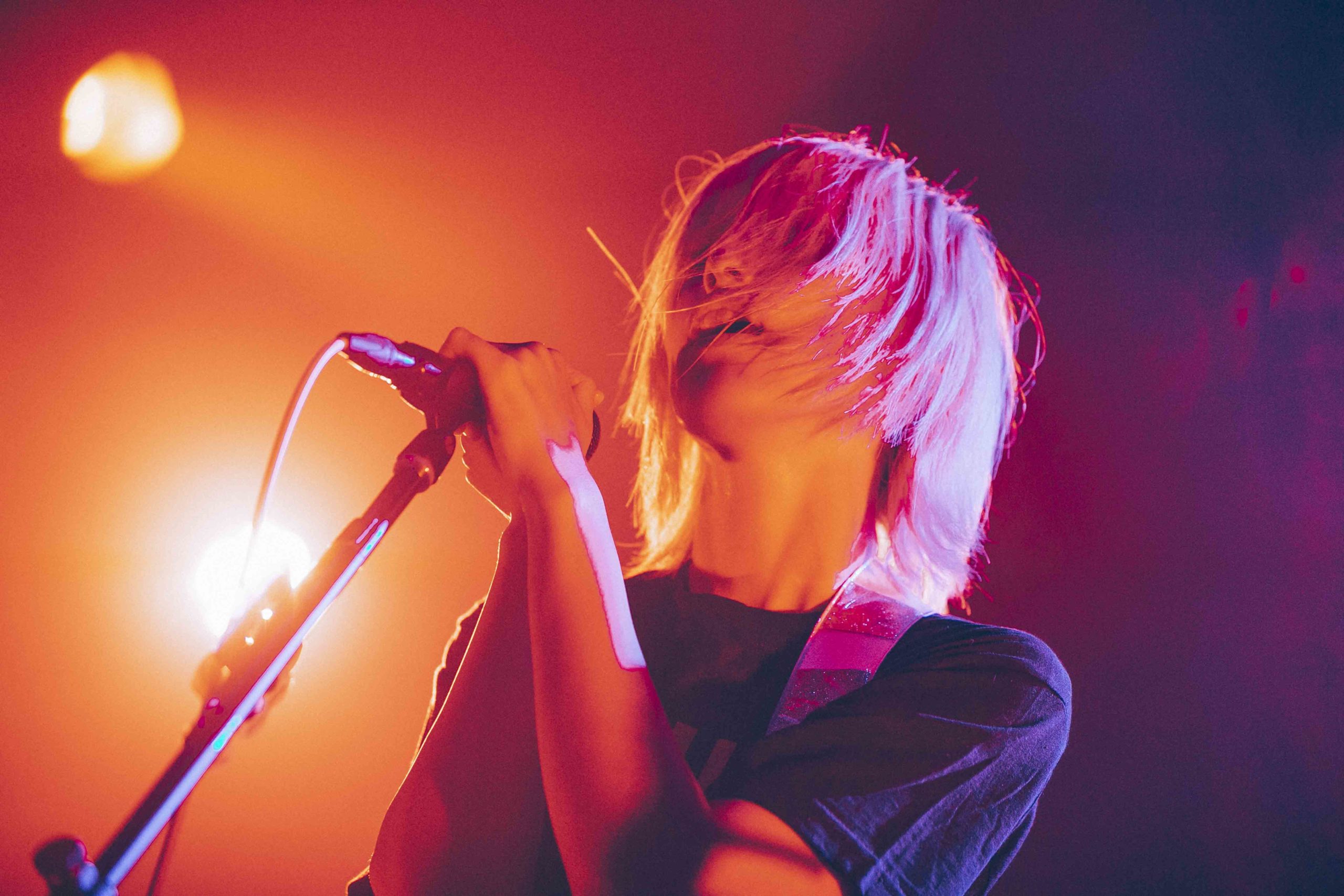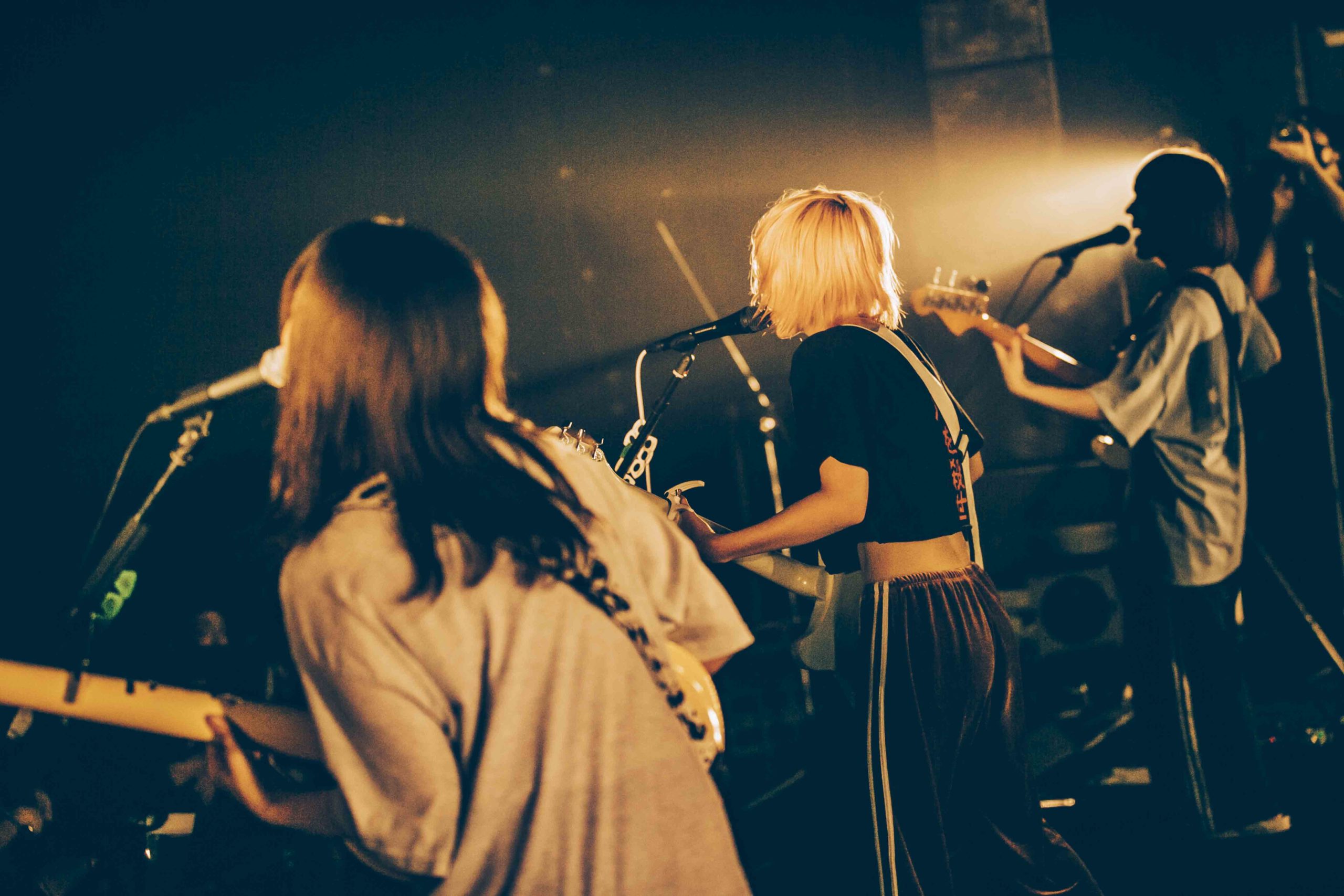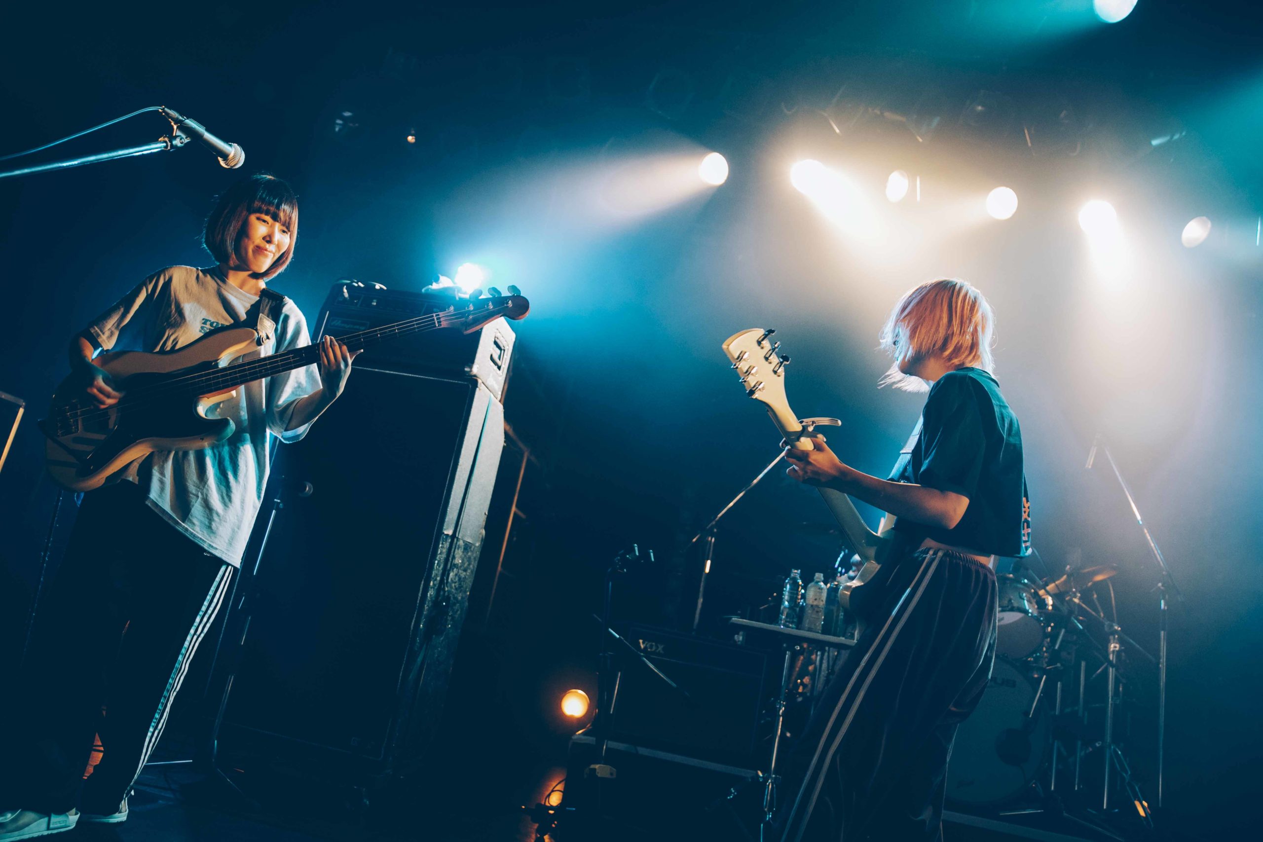 しーなちゃんがまれへの想いを込めて書いた「BABY DON’T CRY」を生々しい歌声で披露し、なおのタイトで骨太なドラムとまれの印象的なリフで始まる「STAND BY ME」では〈ここでつまづくなよ 東京初期衝動!〉としーなちゃんが歌詞を引用しながら叫ぶ。メンバーの狂気的な叫び声が曲へのリアリティを与える「うちのカレピに手を出すな」と、間髪なく演奏していった。