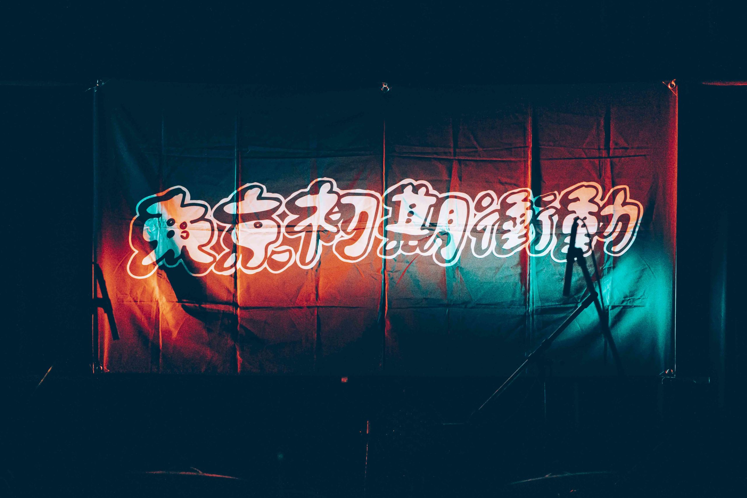 18時7分頃、レーベルオーナーでロックエージェント・ATフィールド代表の青木勉がステージに登場。ライヴ中のマスク着用徹底、飛沫拡散防止のため大声で叫んだり歌うことやモッシュの禁止、ソーシャルディスタンスを保つこと、アルコール販売を中止していること、本日用のチケットをお土産に作ったことなどを伝えた。
