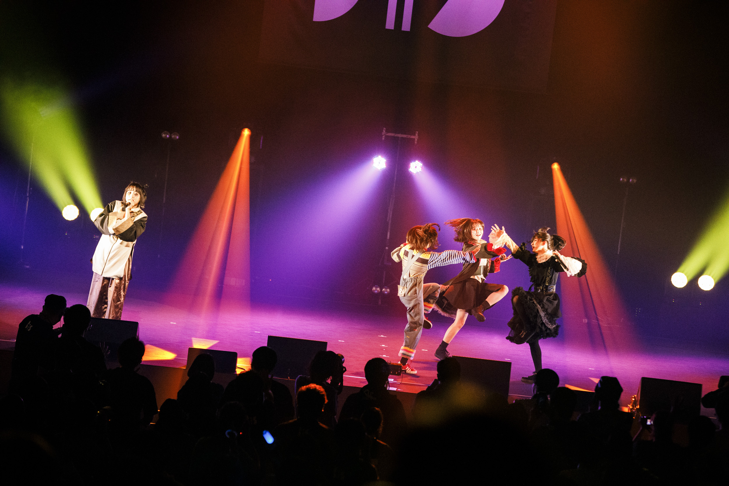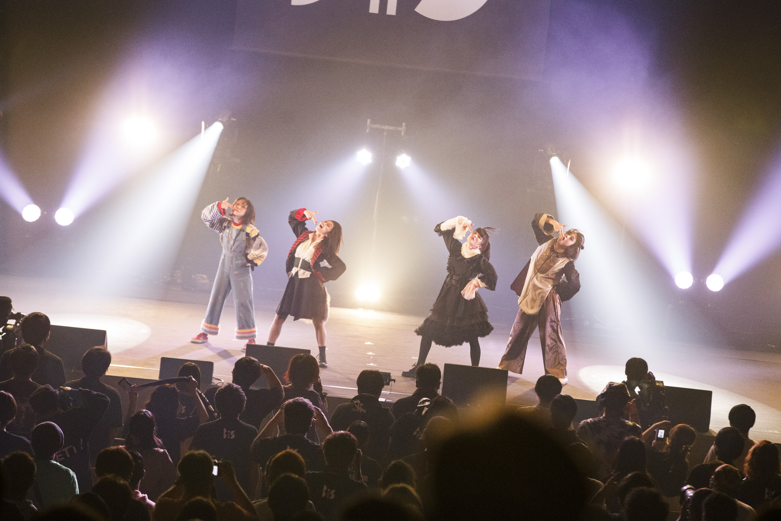 「はじめまして。私たち、新生アイドル研究会BiSです」と挨拶をした後に独特の世界観を発するグランジ楽曲「DEAD or A LiME」で会場の雰囲気を一変させる。