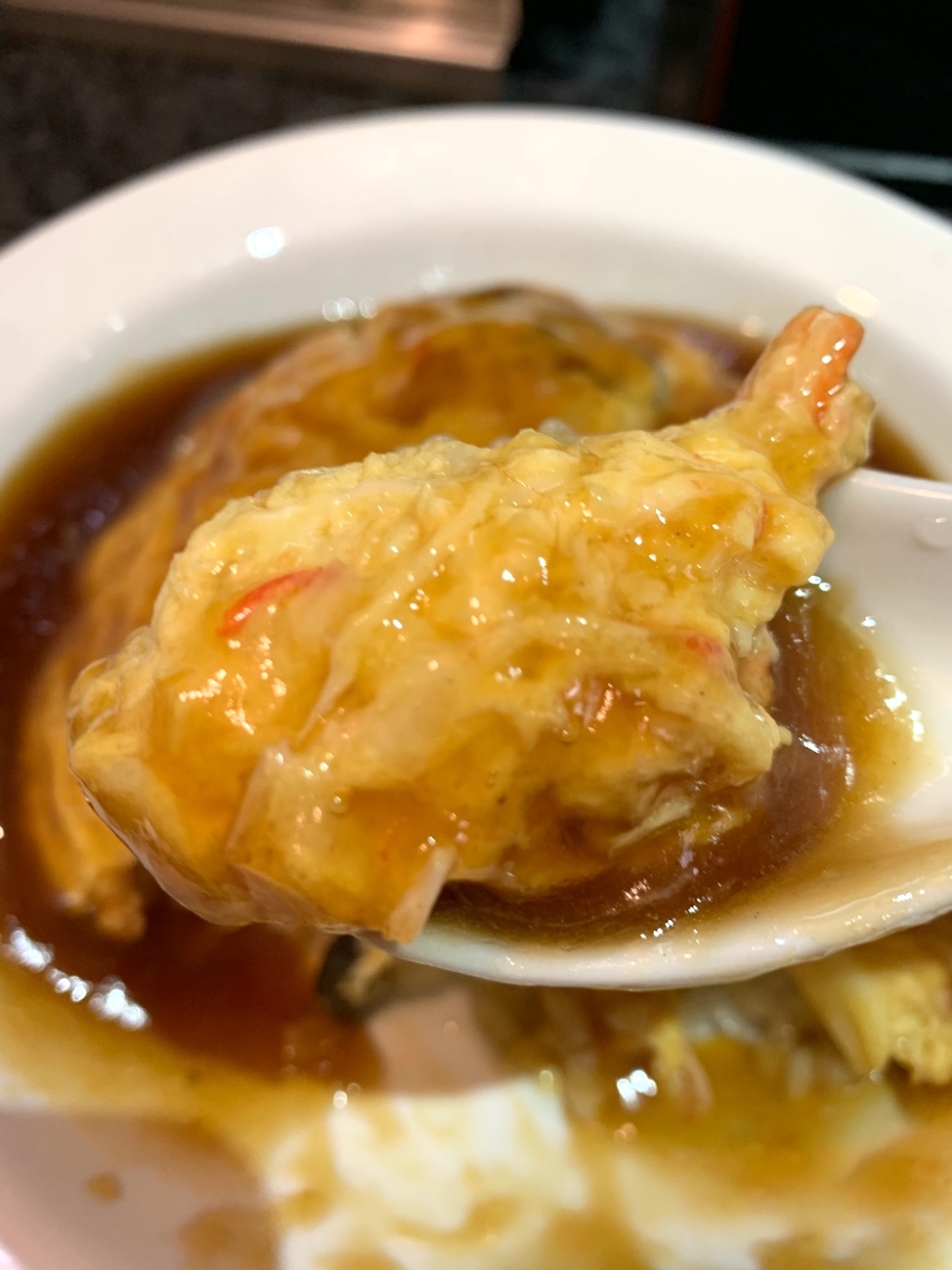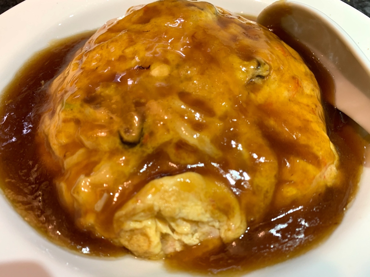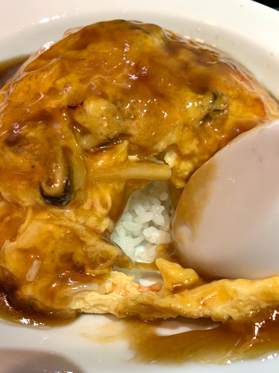 山のように盛り付けられたふつくしい天津飯よ……。