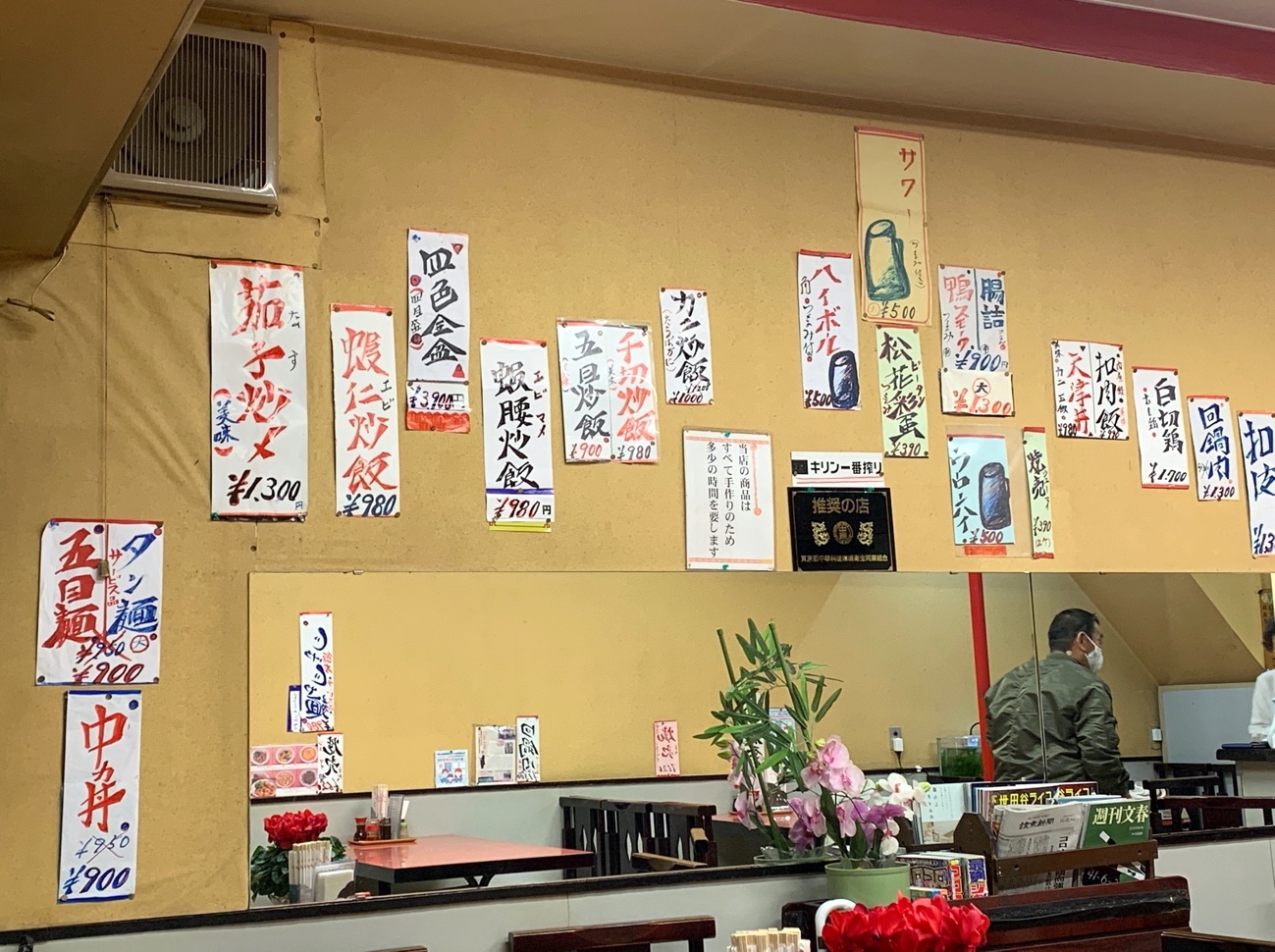 店内は僕1人。嬉しそうに僕の入店を迎えてくれたおばちゃんも親父さんも忙しそうにしておる。写真真ん中の円卓は回せるタイプではないので、店としては本格中華とひとはの中間というところだろうか。うーん、ステキ。