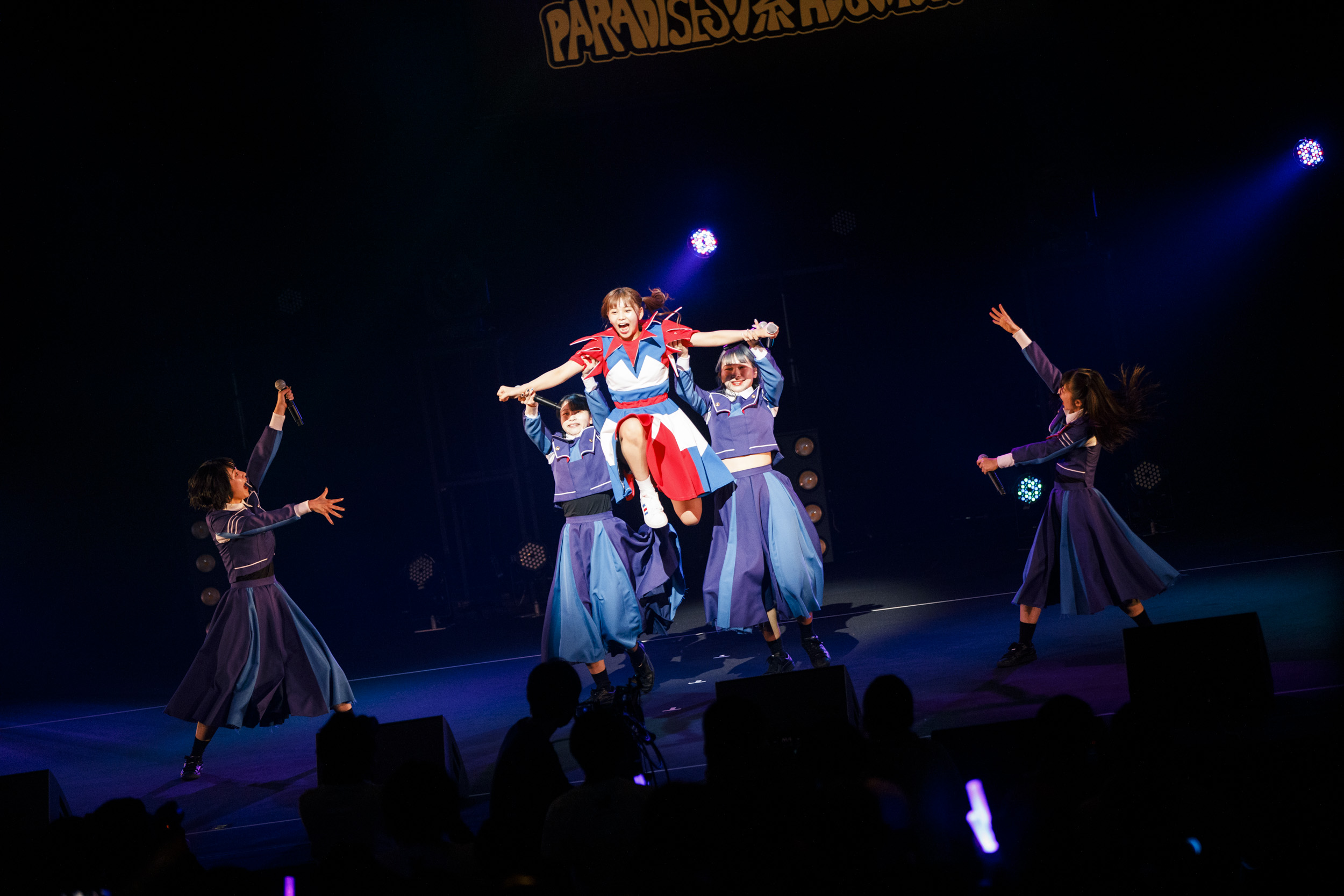 4番手は、愛。「愛です。本日はよろしくおねがいします」と挨拶すると、愛自らがクラップをして観客を盛り上げる振りなどを取り入れて3曲をパフォーマンス。すでにPARADISESの一員であるかのような自然な5人でのパフォーマンスで会場を沸かせた。「今まで練習したことを信じて全力で出し切れるようにやりました」と愛がこの日に込めた気持ちを述べると、渡辺も「いままでの4組の中で一番メンバーとしてまとまっているように感じました」と高評価。「1つ苦言を呈するならば、あなたの衣装がちょっと派手です」と会場の笑いを誘った。