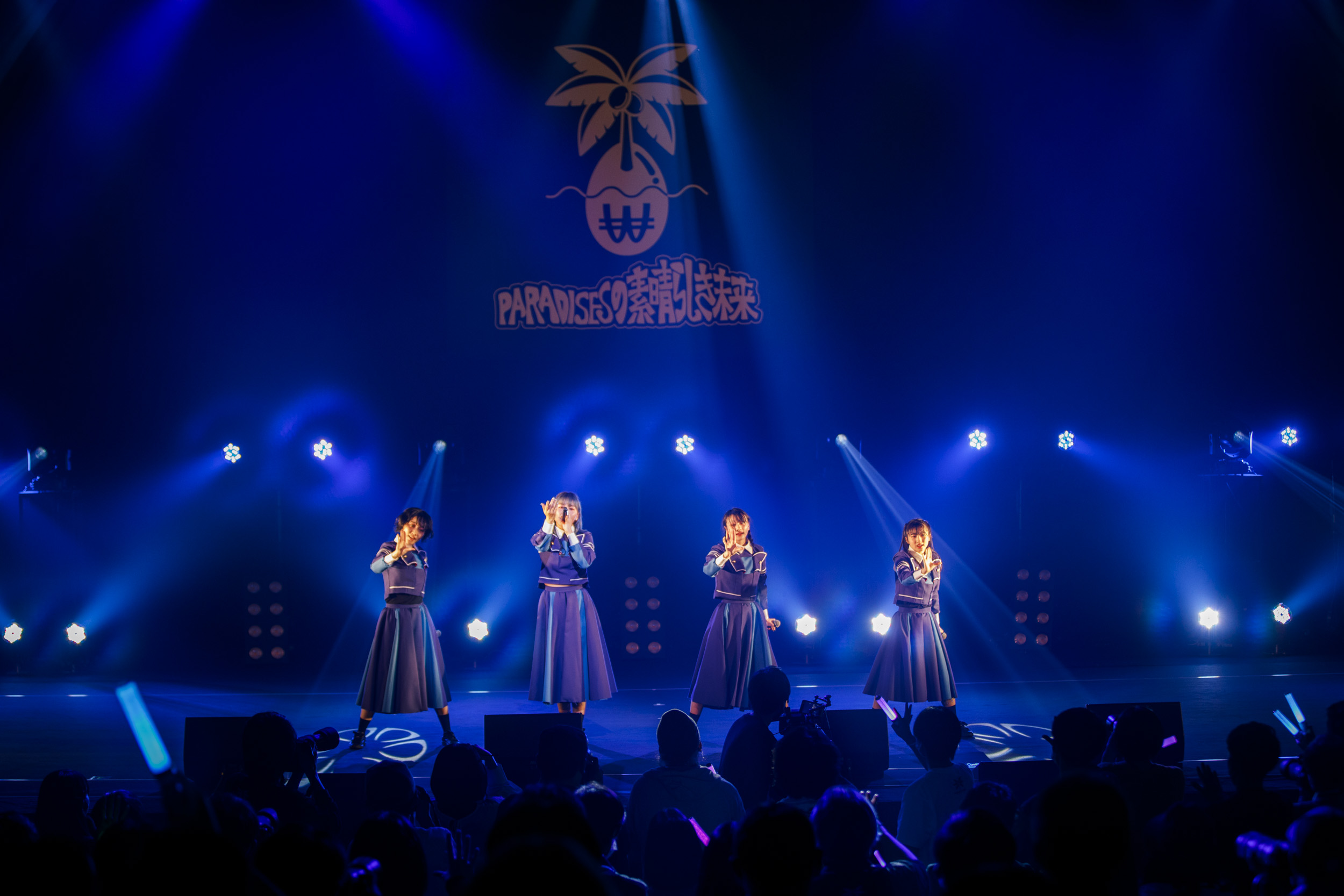 続けて他の審査集計をしている中、PARADISESが「TWINKLE TWINKLE」「BRIGHT FUTURE,YOUR SMILE」「終わらない旅」の3曲を披露。会場のココナッツ(※PARADISESファンの総称)とともに盛り上がり、一体感を見せた。