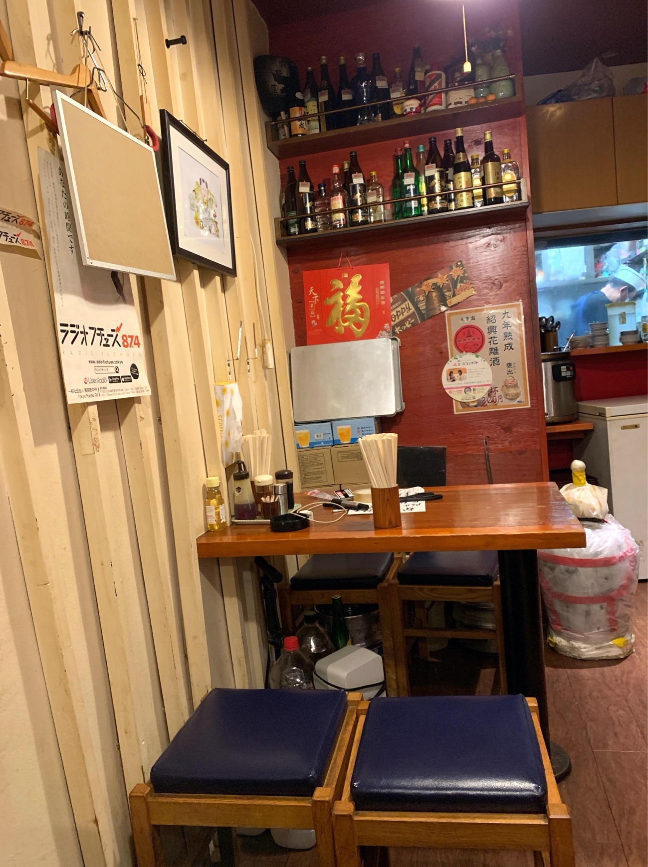 テーブル6,7席ほどのこじんまりしたお店。中国人夫婦が活気よく切り盛りするこちらのお店には、程よい居心地の良い空気感が漂う。仕事帰りのサラリーマンでほぼ全席埋まっていて、コロナの不景気を感じさせない。聞き耳を立てると、中国人ママがお客さん皆を、ちゃんと名前を呼んでにこやかに会話したり、お客さんもお店にお土産を持ってきたりする暖かい店。あゝ、府中は人情の街やでえ。どうかこういうお店はコロナ禍でも消えないでくれえ。