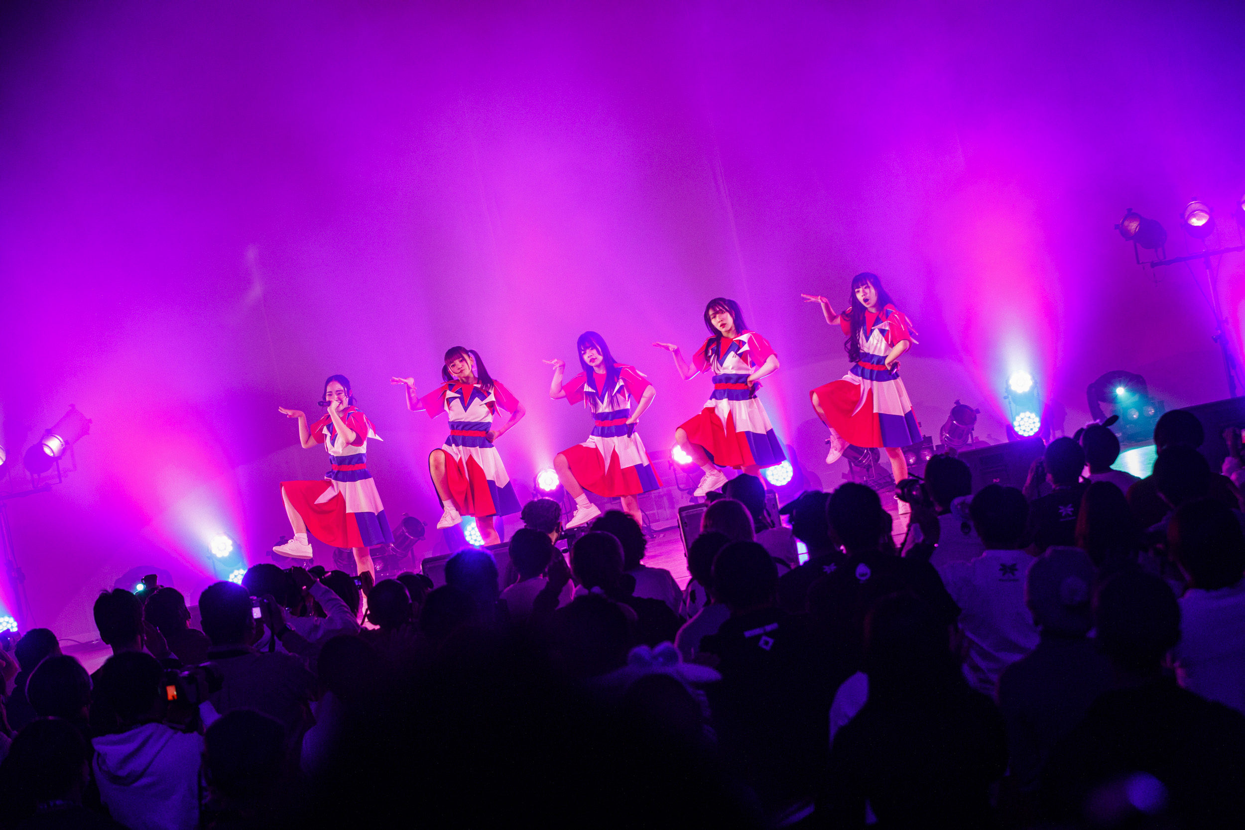 先攻でステージに登場したのは、WAgg。前回の名古屋公演以来、5人体制では2回目のライヴとなる。最初にグループ唯一のオリジナル曲「WAggの素晴らしき世界」を披露。その後、残念ながらFINAL STAGEに進むことができなかったアイナスターがMCを行なった。