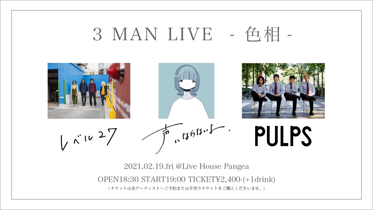 また、2021年2月19日(金)には大阪・心斎橋Pangeaにて、声にならないよとの合同企画3マン〈3MAN LIVE-色相-〉も開催。ゲストにはPULPSを迎える。(玉澤香月)