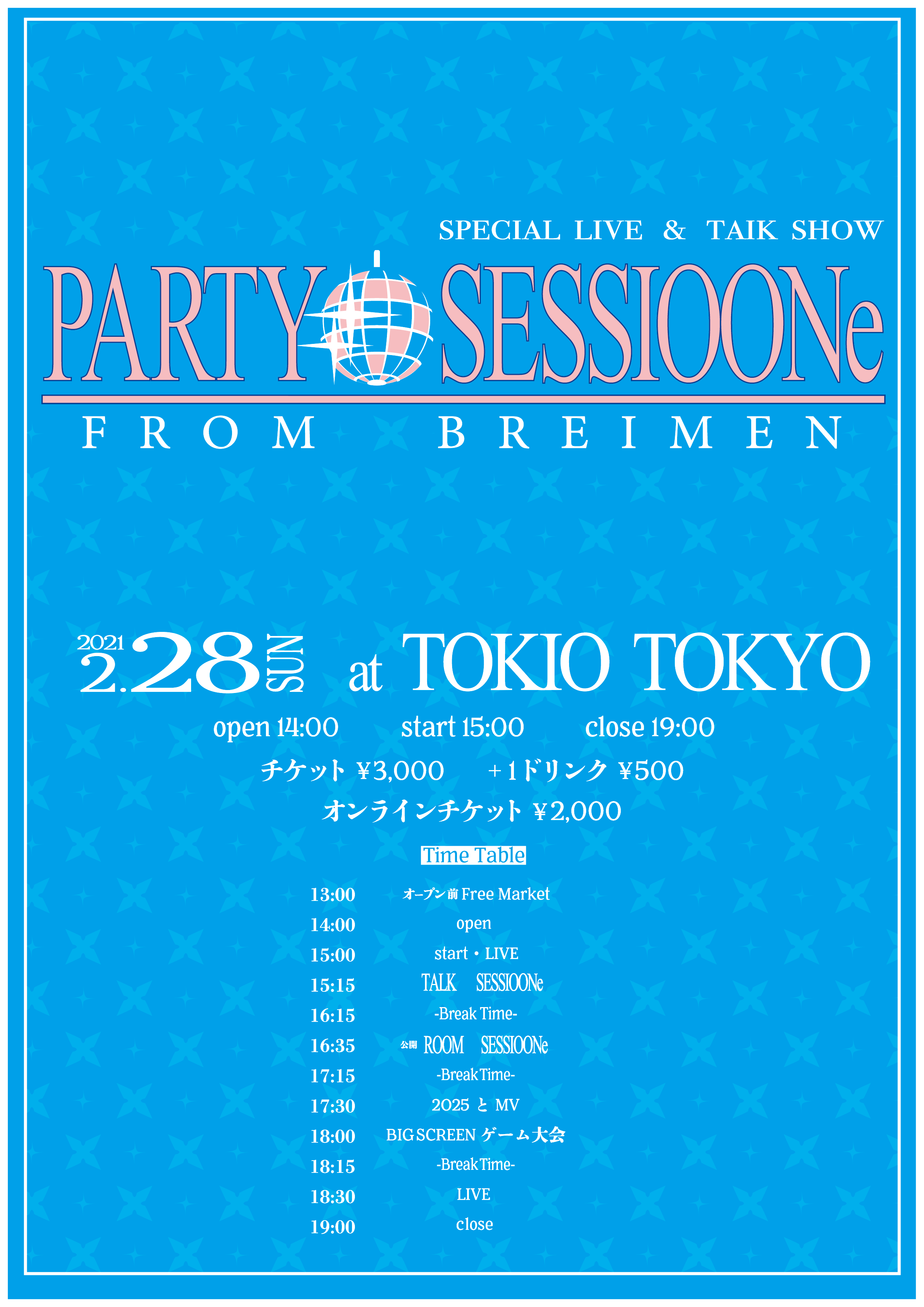 ライヴも少しやるけど色々BREIMENの裏側が知れるような内容になってます。それぞれ無理なく来れる人は来て来れない人は観て、気をつけながらパーティーしましょ。