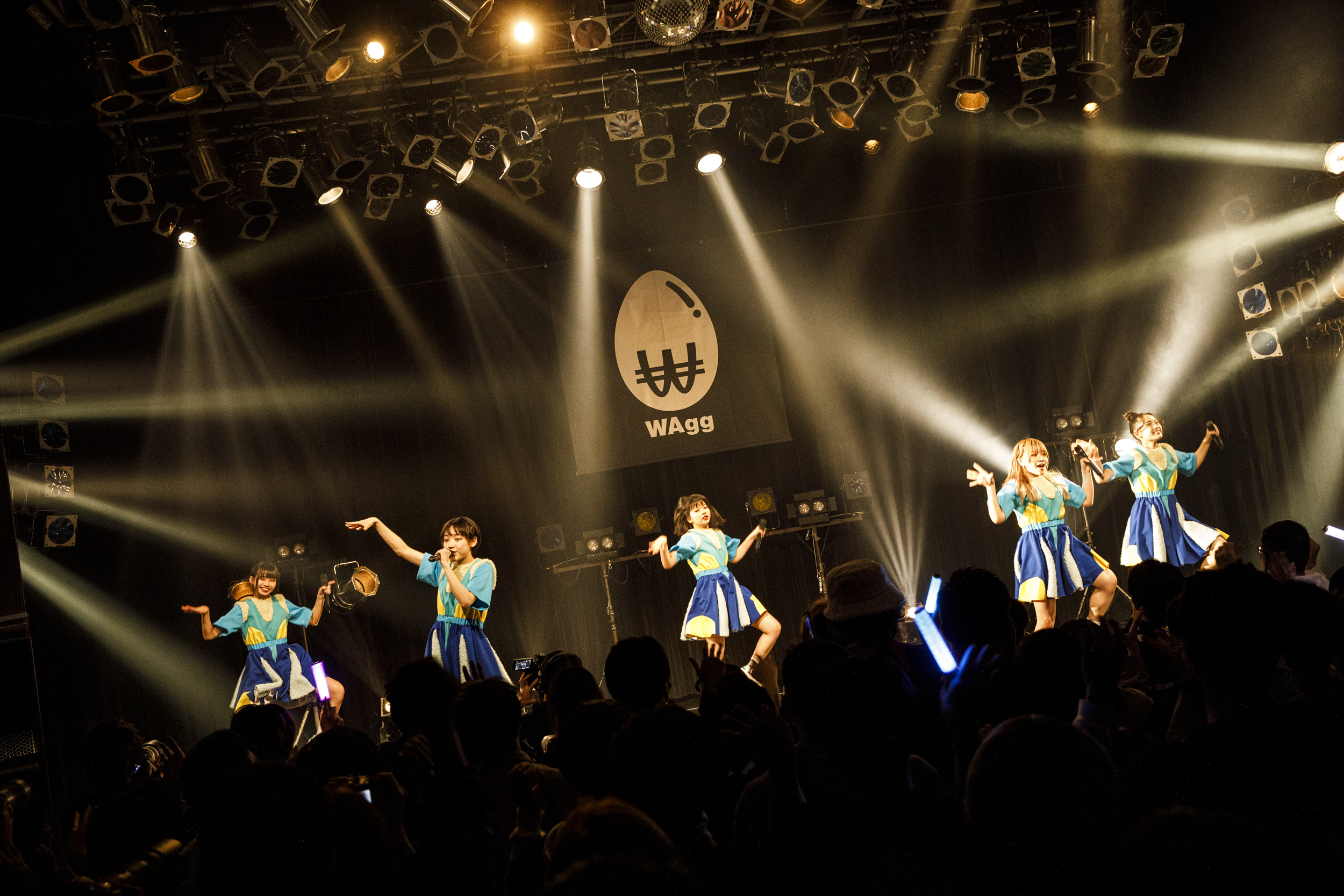 新衣装に身を包んだ5人がステージに登場。「はじめまして、私たちWAggです。よろしくおねがいします!」と元気いっぱい挨拶をすると、WAgg唯一のオリジナル曲「WAggの素晴らしき世界」でライヴをスタート。縦横無尽にステージを動き回り、全身を使ってパフォーマンスを行った。
