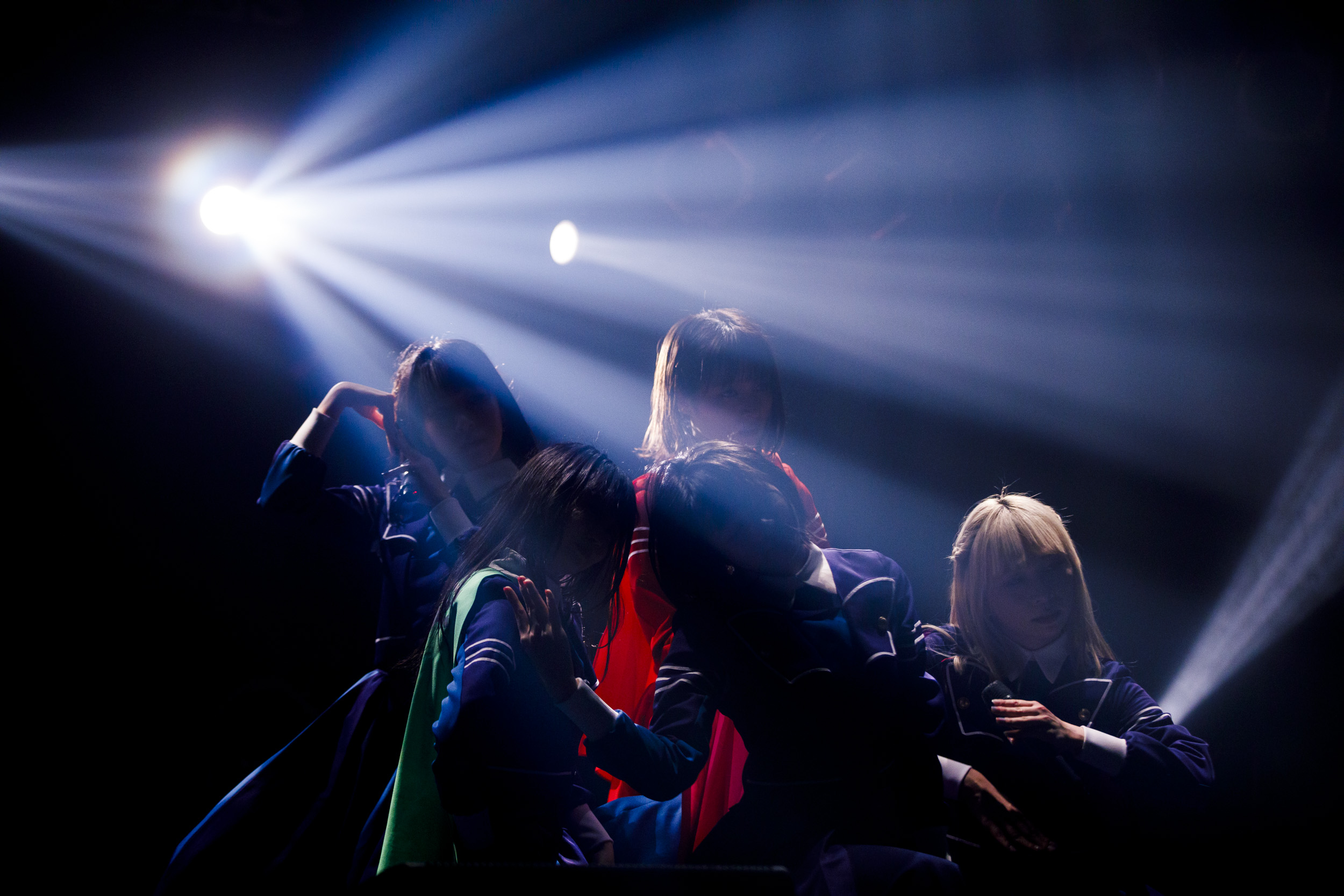 「画面の向こうまで私たちの気持ちを届けるつもりなので、最後までよろしくおねがいします!」とキラ・メイがタイトルコールをし、「TWINKLE TWINKLE」へ。BPMが緩めのメロディアスなディスコチューン「命短し乙女たち」をしなやかに魅せると、軽快なロックチューン「Youth Song」、エッジの利いたギターカッティングで始まる「アレキシサイミア」を5人でステージを広く使ってパフォーマンスした。