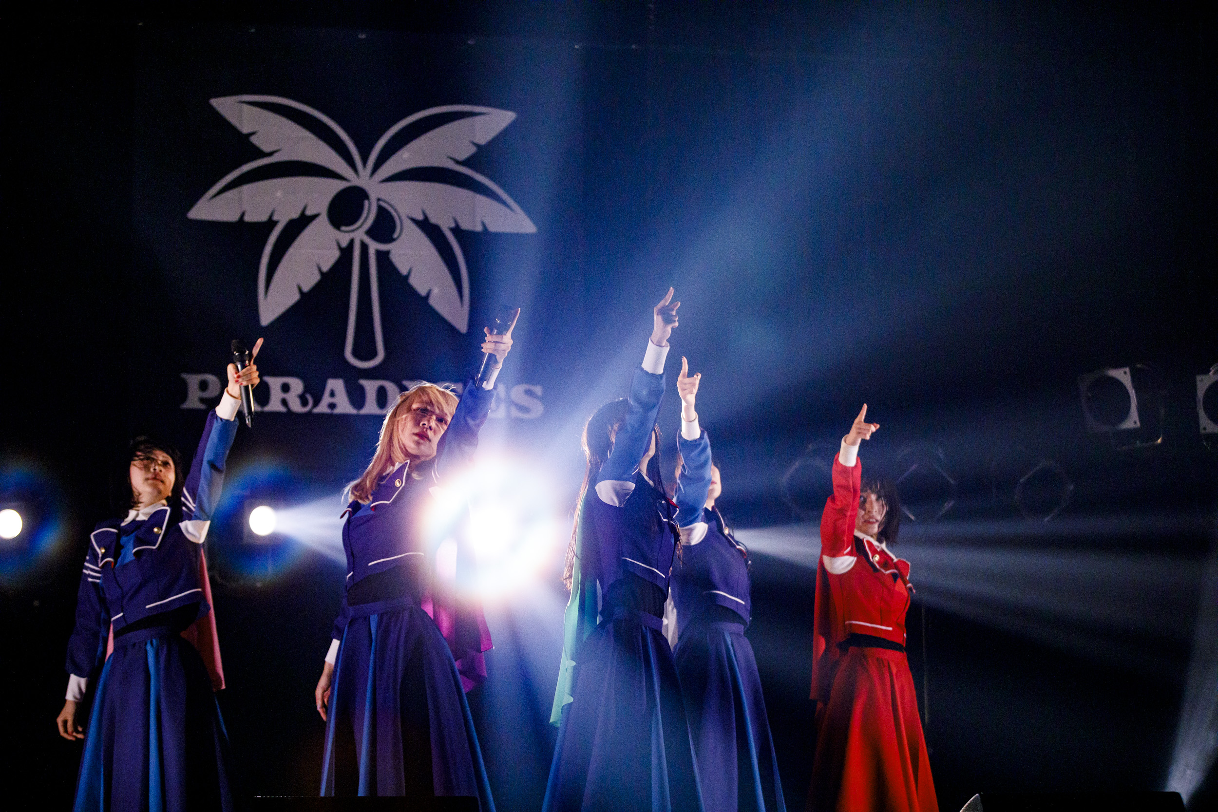 アンコールでは、キャ・ノンが合宿でパフォーマンスし思い入れのある「PARADISES RETURN」をメンバー5人が気持ちを込めて歌い踊ると、ナルハが「これからもあなたの笑顔が輝き続けますように!」と叫び「BRIGHT FUTURE, YOUR SMILE」へ。最後はPARADISESSの初楽曲「GOOD NIGHT」をステージの前後左右をいっぱいに使ってパフォーマンス。ウタが「また会いましょう!」と叫び、キャ・ノン加入後初の5人体制お披露目ライヴは幕を閉じた。