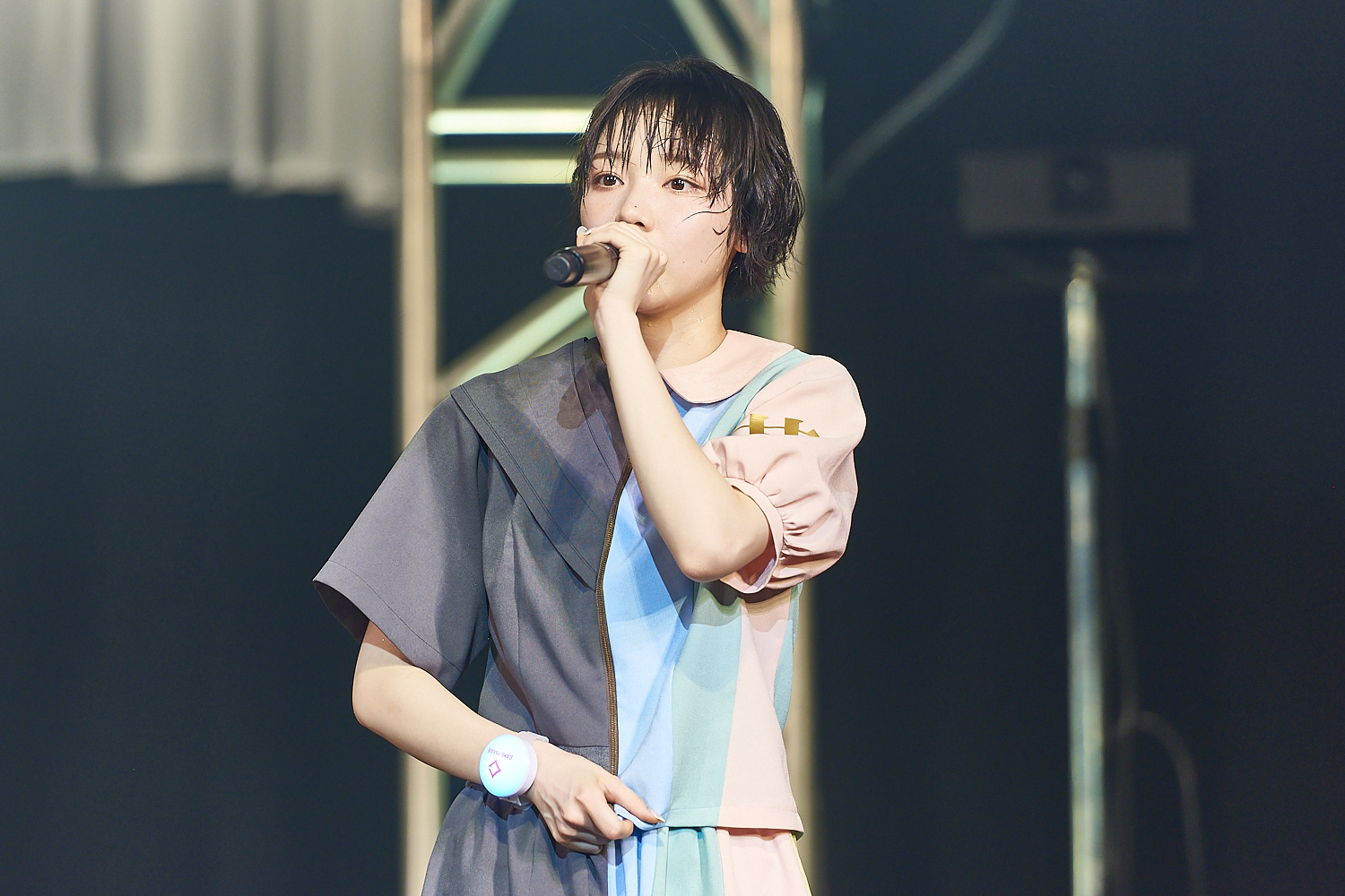 月ノウサギ「遊びに〜ん!! 遊びに~ん!! ずっとずっとこの名前を叫びたくてたまりませんでした。遊びに~ん!! 世界や日常がたくさん変わってしまって。でもそんな中でもGANG PARADEの音楽を通して、遊び人とこうやって出会えたことが本当に嬉しくて幸せで仕方がないです。今日ここに来てくださったこと、そして、今日という日まで待っていてくれたこと、本当にありがとうございます。私はいまPARADISESでもGO TO THE BEDSでもなく、WAggという研修生のグループに移籍をしていて、そのグループはWACKのいろいろな曲をやらせていただくんですけど、私は別の形でGANG PARADEの音楽に触れることになりました。その中で、GANG PARADEっていうグループがどれだけたくさんの人に支えられてきたのか、GANG PARADEの音楽がどれだけの人に愛されていたのかを、改めて痛感して。だから、改めて伝えさせてほしいです。いままでGANG PARADEを支えてくださった全てのみなさん、そしてGANG PARADEを愛してくださっている遊び人のみなさん、本当に本当にありがとうございます。未来がどうなるかは正直何もわかりません。でもGANG PARADEが積み重ねてきた思い出は絶対に消えないものです。私はWACKに入って、GANG PARADEに入って、遊び人のみんなにあえて、サキさんの背中を追うことができて、本当に幸せものでした。これからもこのみんなの遊び場が遊び人のみんなの心の中で、どうか生き続けますように」