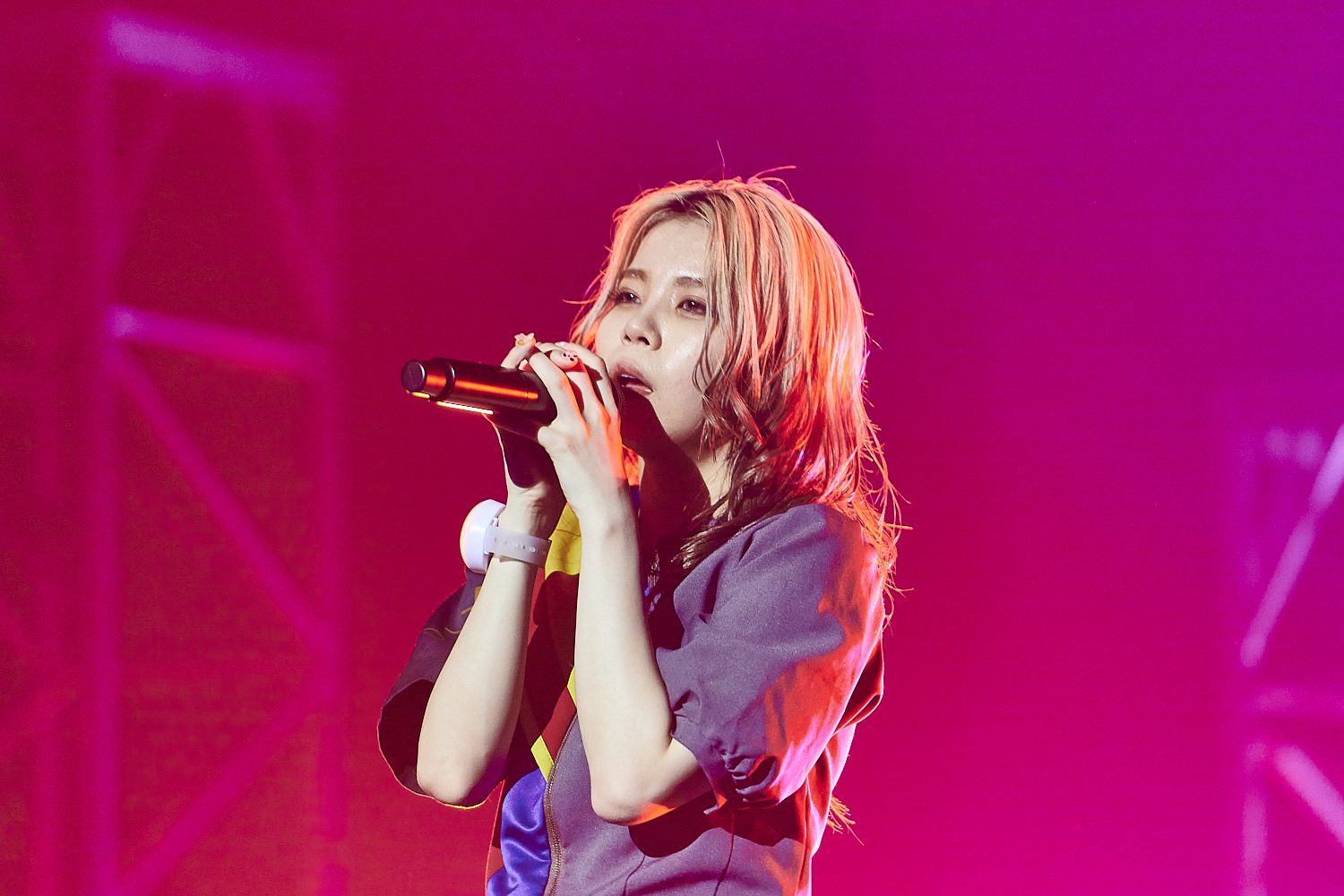 すごいもう溶けそうな拍手をいっぱい浴びています。拍手であああとなっちゃうくらい一生分の拍手をみなさんからいただいている気がします。本当にありがとうございます。もう最後の曲になってしまうんですけど、この曲は、はじまりの曲です。これからもずっとこの曲が歌い継がれていくよう、私は願っています。そのときはみなさん、大声で叫んでください。今はたくさん手を振ってください。みんなの遊び場をみなさんと作れて幸せでした。言葉にしても足りないくらいの愛を込めて」