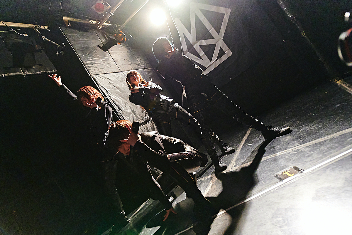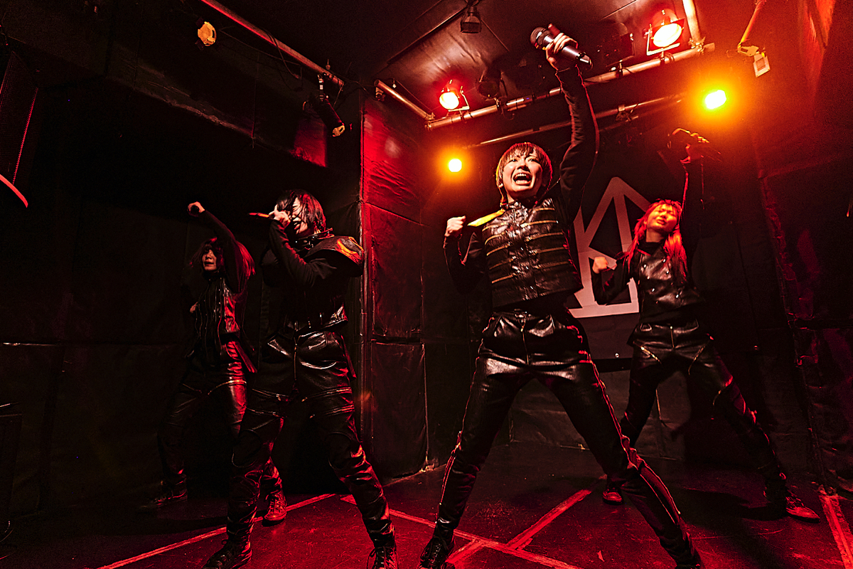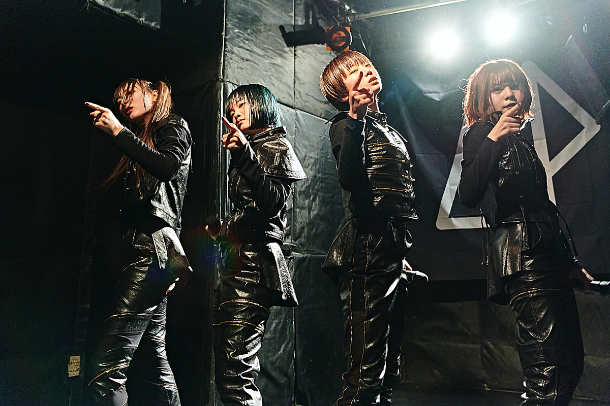 しばらくすると映画館の照明が暗くなり、スクリーンに中野heavy sick ZEROの様子が映し出された。映画館らしい質感の映像の中に、ユメカ・ナウカナ?(ex. CARRY LOOSE)、ナ前ナ以、モグ・ライアン、ナアユ(ex. WAgg)の姿が現れると、「はじめまして。私たちASPです。よろしくおねがいします!」という挨拶とともに、アルバムの1曲目「拝啓 ロックスター様」からライヴがスタート。真っ黒でタイトな衣装に身を包んだ4人はヘッドバンキングや足を蹴り上げるなど、アイドルというよりもパンキッシュな振付で「A SONG OF PUNK」、「BE MY FRiEND」と駆け抜けた。