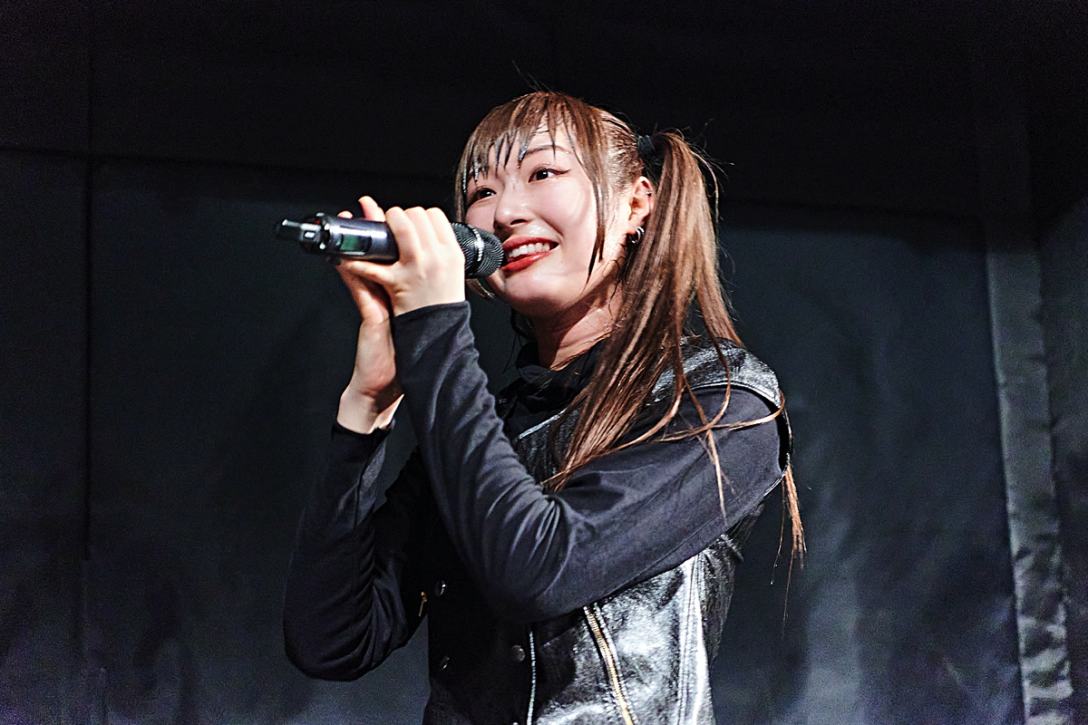 モグ・ライアン「はじめまして。モグ・ライアンです。私は、檻をぶっ壊して、自由をもとめてここにやってきました。いま、ASPっていう自分の生きる場所を手に入れることができて、初めて仲間ができて、毎日はじめて知ることとか、感じることとかたくさんあって、生きてるって日々実感できて。苦しいけど、すっごい楽しいです。だから、もう過去の自分は捨て去ります。どんなことがあっても、何があっても、このメンバー──ユメカ、ナアユ、ナ前ナ以、そしてみなさんと一緒にASPを続けていきたいです。今日はライヴに来てくださって、本当にありがとうございます」
