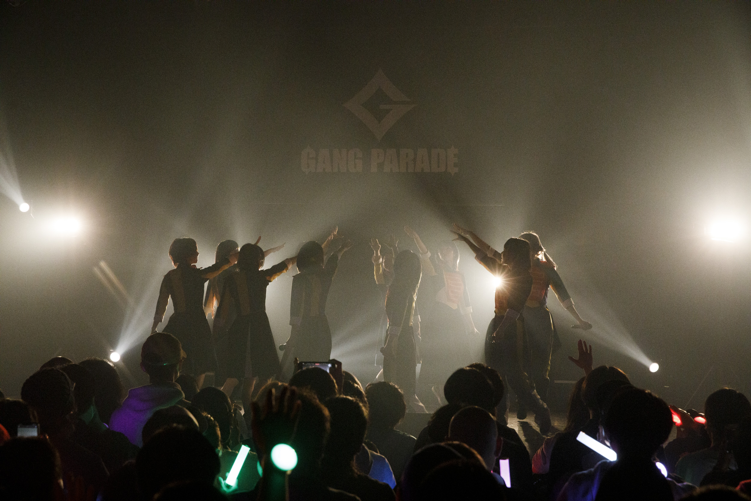 メジャーデビュー楽曲「ブランニューパレード」、WACKの歴史をギャンパレ流に昇華した「LAST」をパフォーマンスし、大きな拍手が沸き起こる中、テラシマが「GANG PARADEとして立ち止まってしまっていた2年間、PARADISESでもGO TO THE BEDSでもGANG PARADEでも、どんな形であれ、私たちの想いは変わりませんでした。どんなときも、いつだって、諦めずに私たちはみんなの遊び場を作り続けていきます」と丁寧に語り、PARADISESの楽曲「PARADISES RETURN」をギャンパレとして10人で歌った。