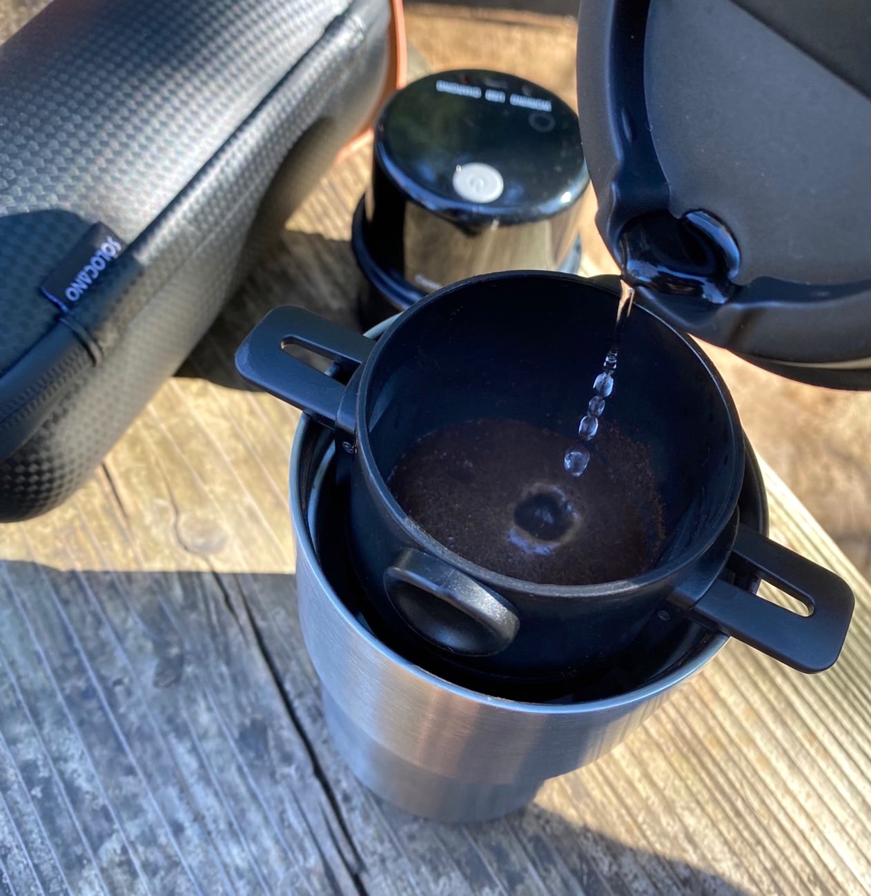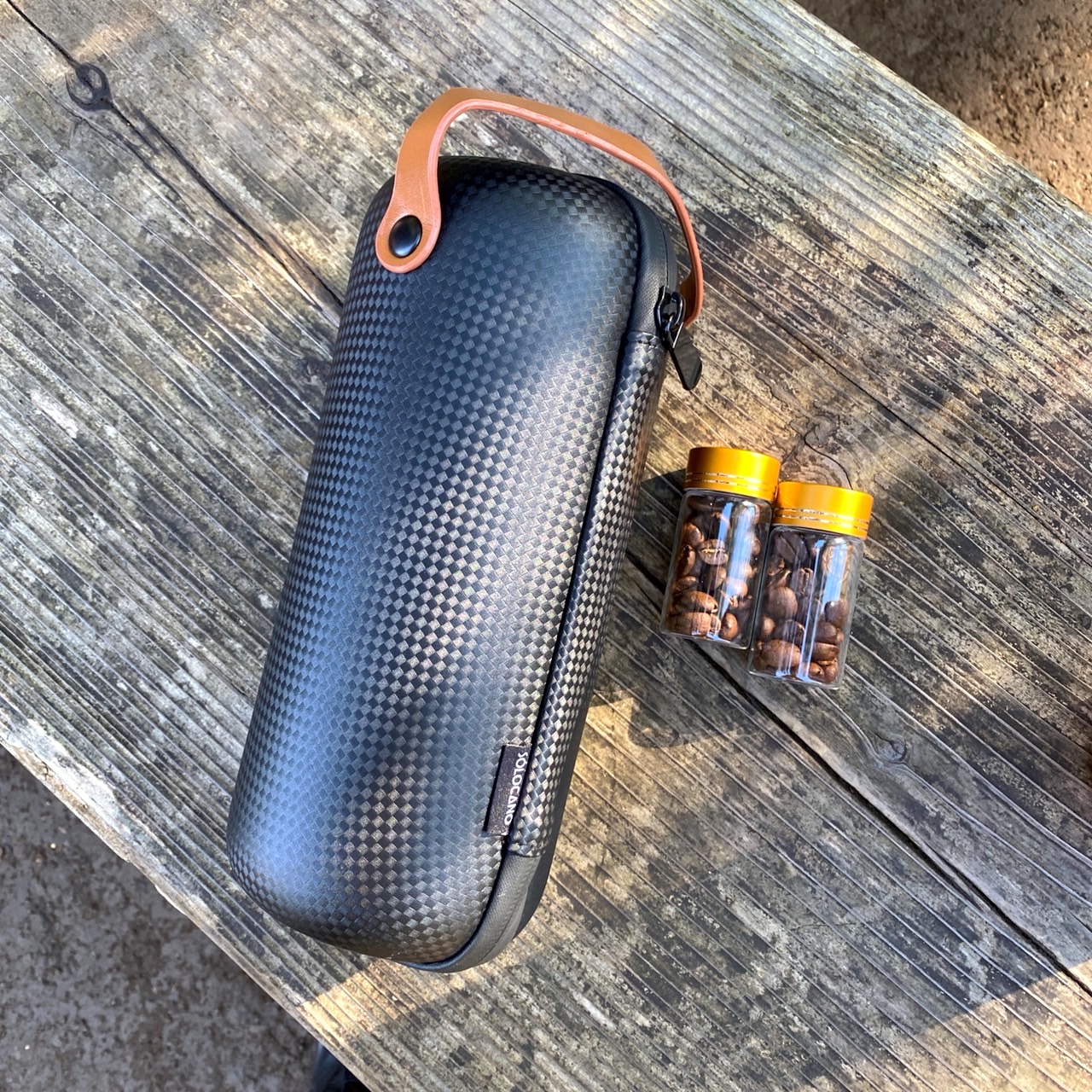 珈琲をいれる道具が全てひとつのバックに入ってて、お湯だけは別で用意する必要がありますが、ほぼこれひとつで、いつでも、どこでも、本格的な珈琲が楽しめます。