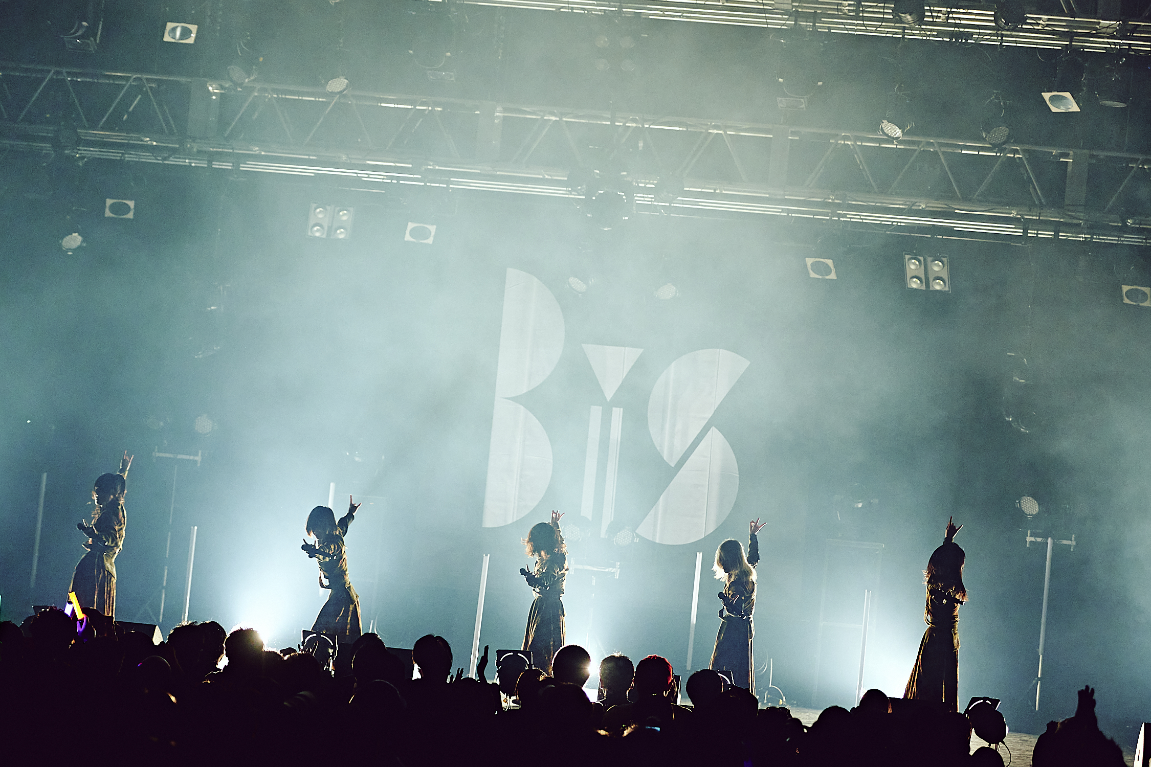 「はじめまして、私たち新生アイドル研究会、BiSです!」とトギーを中心に全員で挨拶をし、1人1人が簡潔に自己紹介をすると、5人でマイクを通さず「よろしくおねがいします!」と気合を伝えた。間髪おかず「BASKET BOX」のイントロが流れ、メロコア調の同楽曲を披露、研究員たちも両手を交互に天井に突き上げ一体感を生んだ。一転し、緑と赤を基調とした照明の中、ダークでヘビーな楽曲「DEAD or A LiME」で魅せると、久しぶりの披露となる「イミテーションセンセーション」へ。AメロBメロを5人編成での新たな振り付けで表現した。続く「thousand crickets」では、ラジオ体操でストレッチをしてからサビでヘッドバンキングへ。2番に突入すると、楽曲にあわせてスクワットを始めた。客席の研究員たちも一緒になってスクワットをし、1回1回、両手を上げた。止まることなく「テレフォン」、「FUCKiNG OUT」、「つよがりさん」と一気に駆け抜けて会場の熱を上げた。