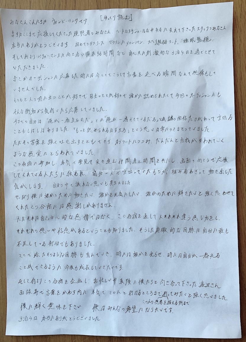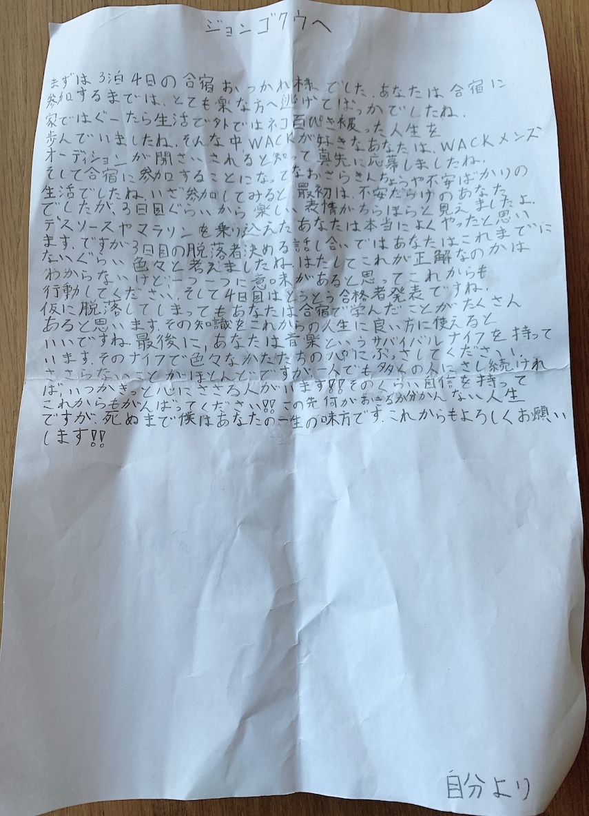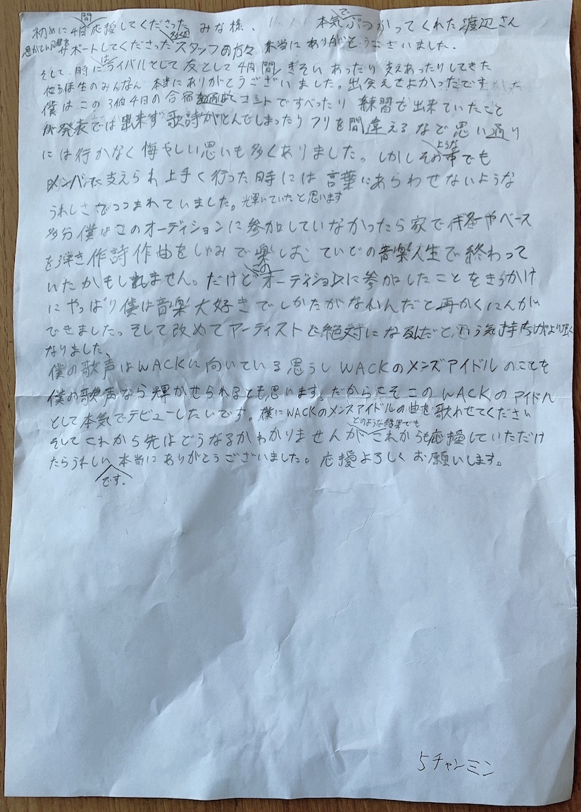 ジョンゴクウ「改めて、4日間応援してくださったみなさん、ありがとうございます。まさか自分が受かると思っていなくて、すごくビックリしているんですけど、WACKに入った以上、死ぬ気で本気でやるので、これからもよろしくおねがいします」