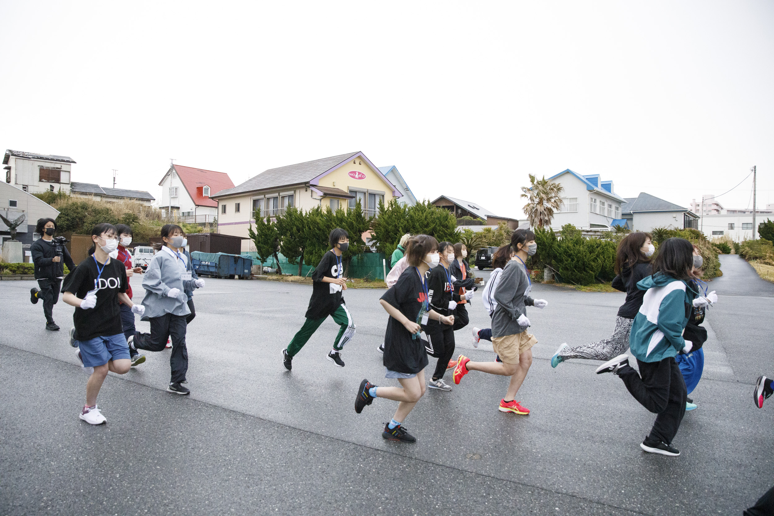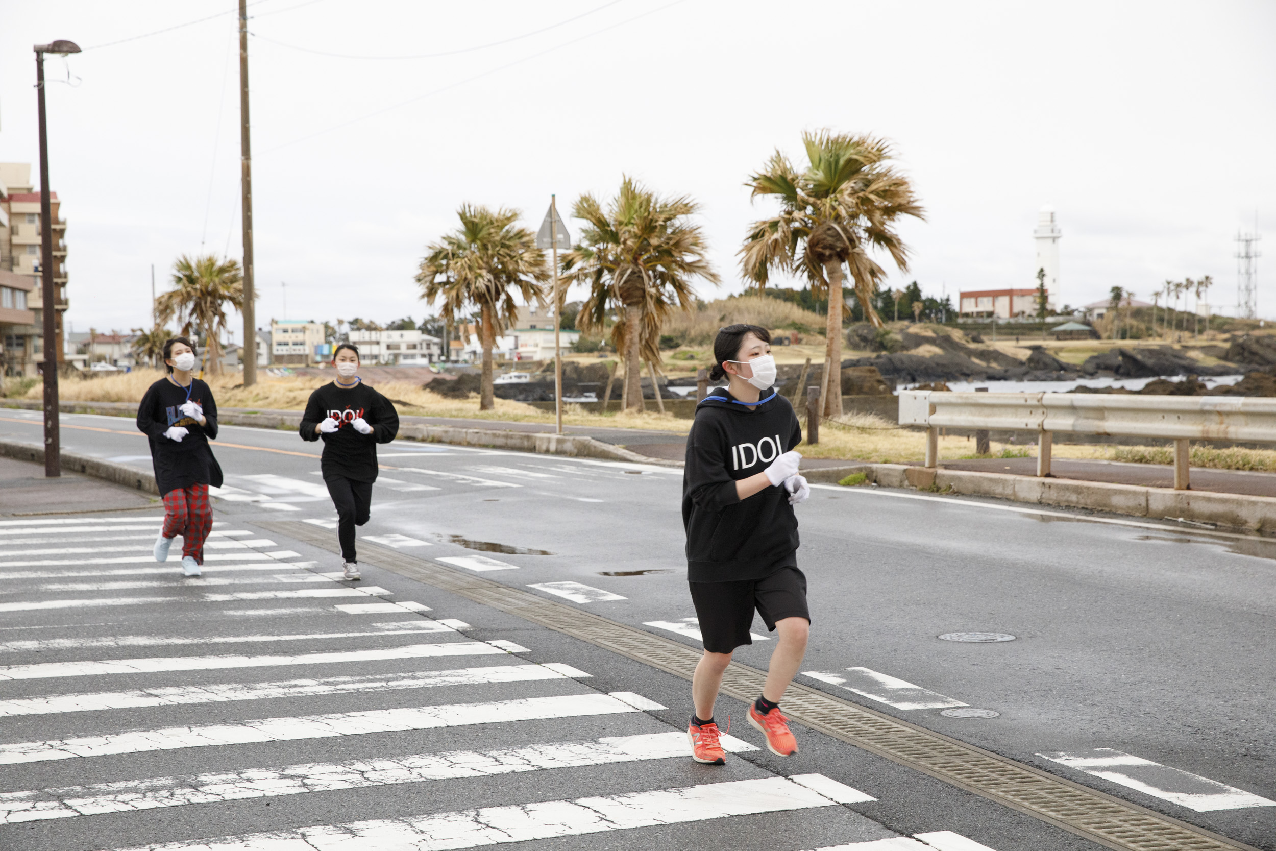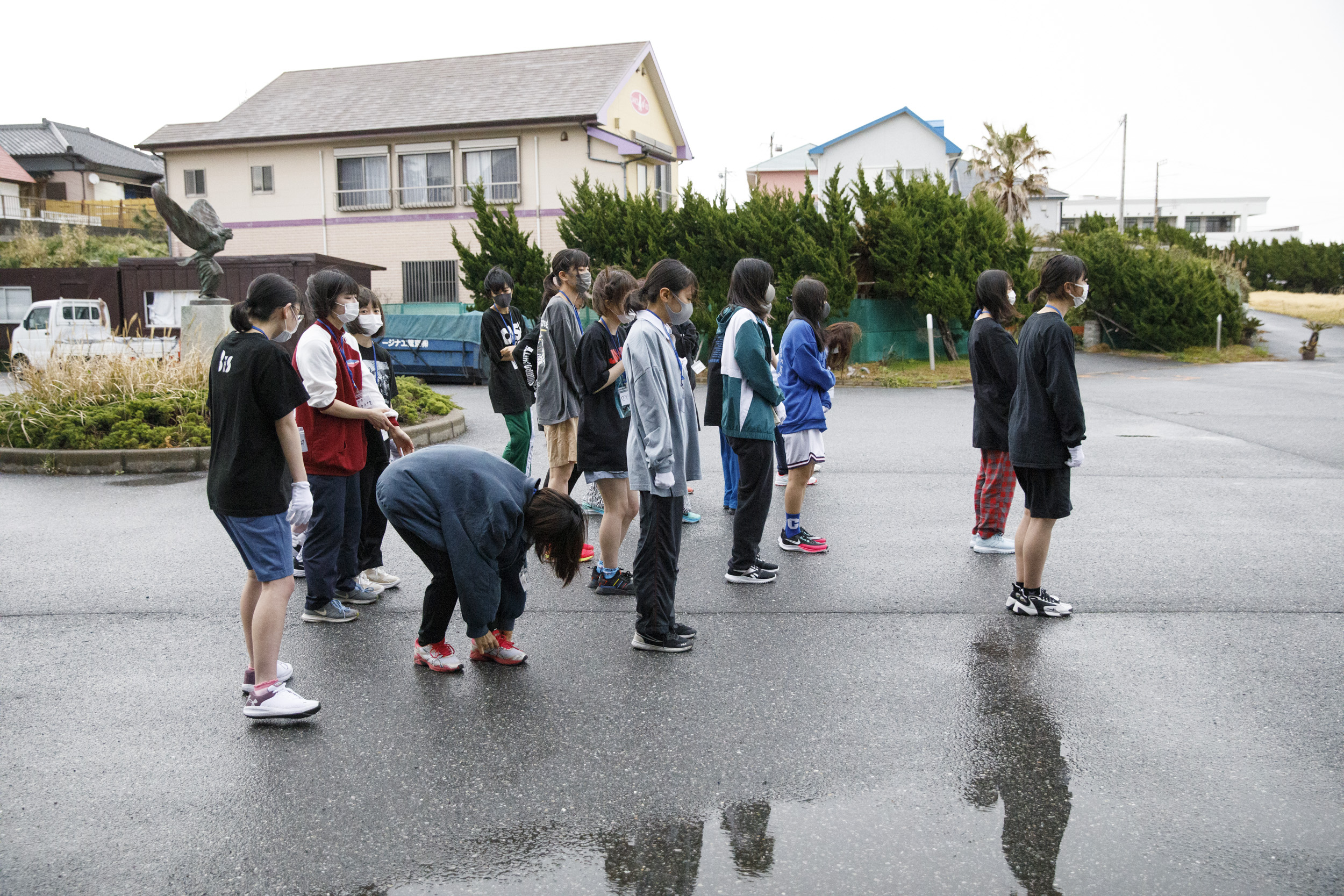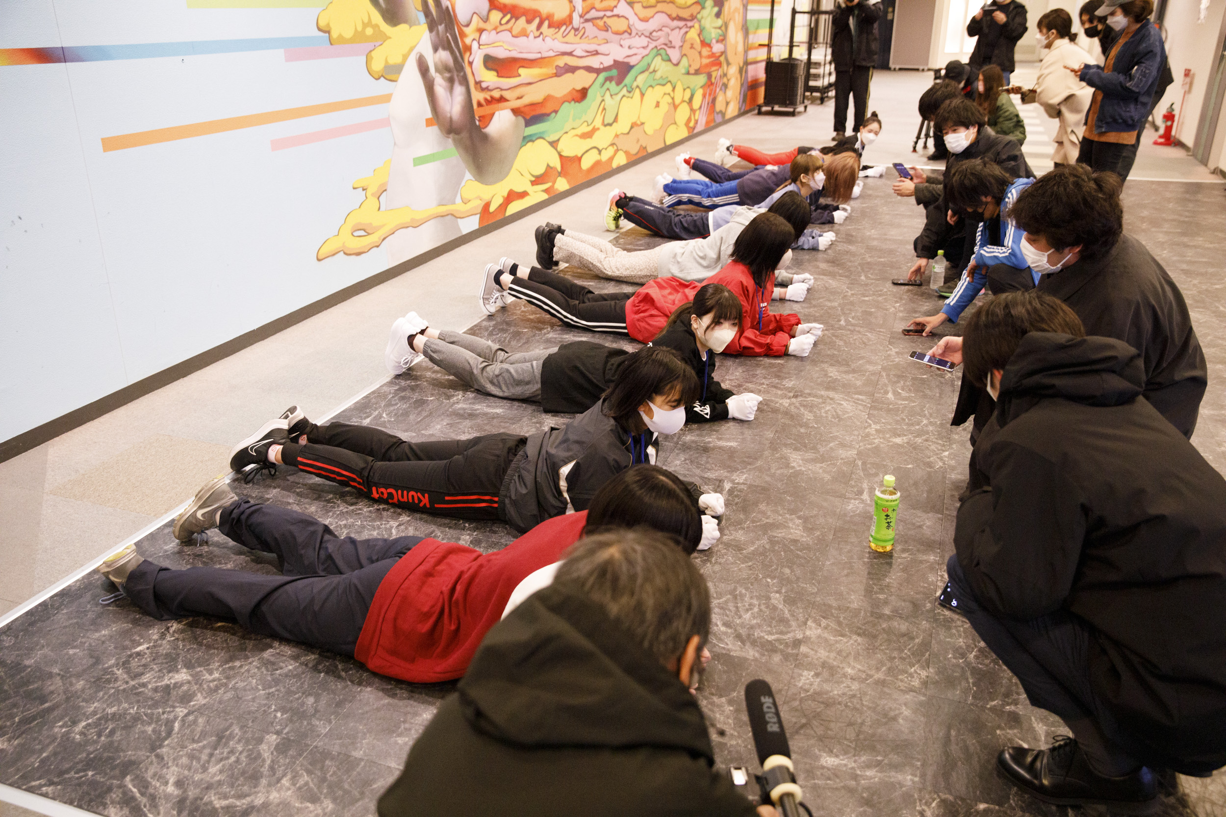 マラソン後、7時15分より朝食の時間に。その後、グループごとに体育館でパフォーマンス審査の練習に励んだ。