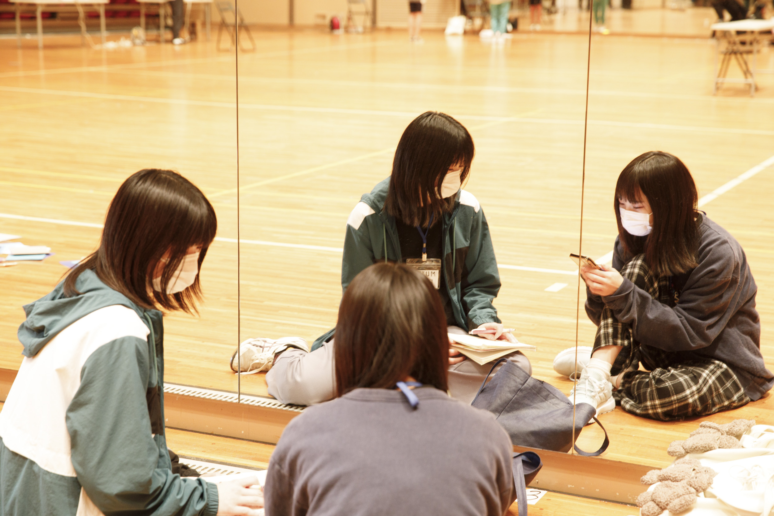 マラソン後、7時15分より朝食の時間に。その後、グループごとに体育館でパフォーマンス審査の練習に励んだ。