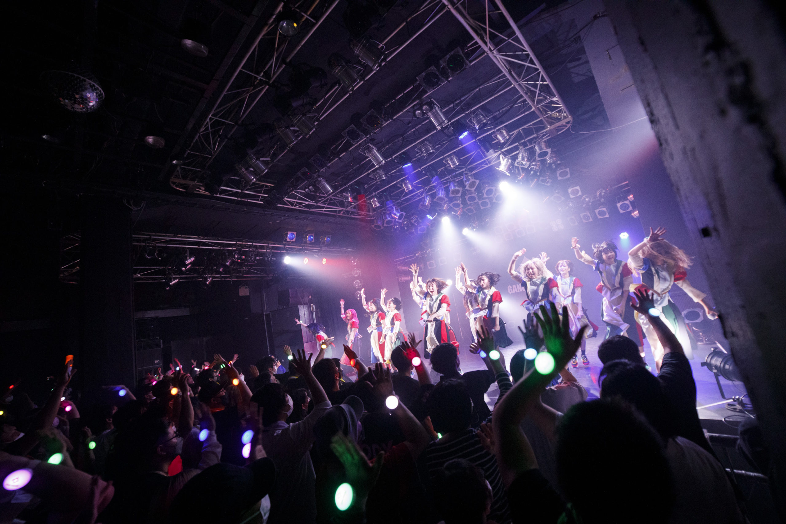 そう想いを語ると、メジャー1stシングル曲「ブランニューパレード」を13人でパフォーマンス。続けて「らびゅ」、POP時代から歌い継がれる楽曲「pretty pretty good」、ギャンパレにとって最も歴史の深い代表曲「Plastic 2 Mercy」を全力で披露し、遊び人たちと産み出した熱気の中、本編は幕を閉じた。
